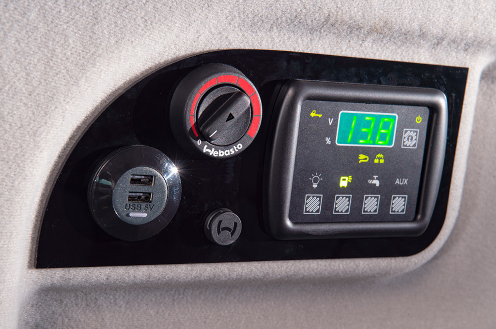 Il pannello di controllo digitale è di facile utilizzo e fornisce informazioni sullo stato della batteria, delle luci, della pompa dell'acqua e del riscaldamento, oltre a offrire connessioni USB. Basati su veicoli Citroën e Renault, i minivan Adria Active sono progettati per prestazioni elevate e comfort tutto l'anno, con riscaldamento, ventilazione e aria condizionata.