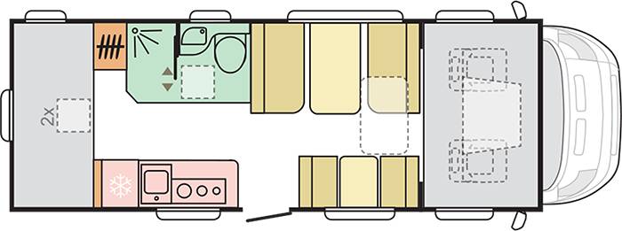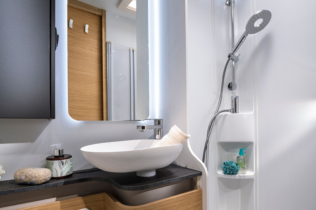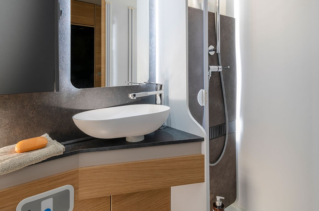 Con pensili per lo stivaggio, un intuitivo sistema di illuminazione e una lunghezza esterna che varia da 6999 a 7399 mm, Adria Coral offre tutto ciò di cui si ha bisogno per vivere avventure senza confini, con stile e comfort ineguagliabili.