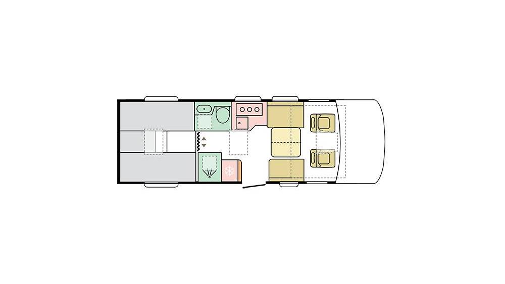 Il veicolo offre anche un'organizzazione dello spazio eccellente con ampi spazi di stivaggio, grandi pensili e soluzioni innovative come la dinette con sedili comodi e pieghevoli. Per un maggior comfort, i materassi sono rivestiti in Tencel®, con una struttura in schiuma ad alta resistenza che garantisce supporto e protezione naturale contro odori e batteri.