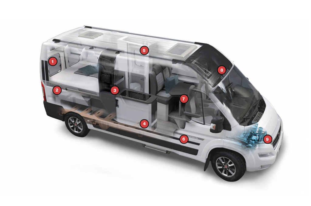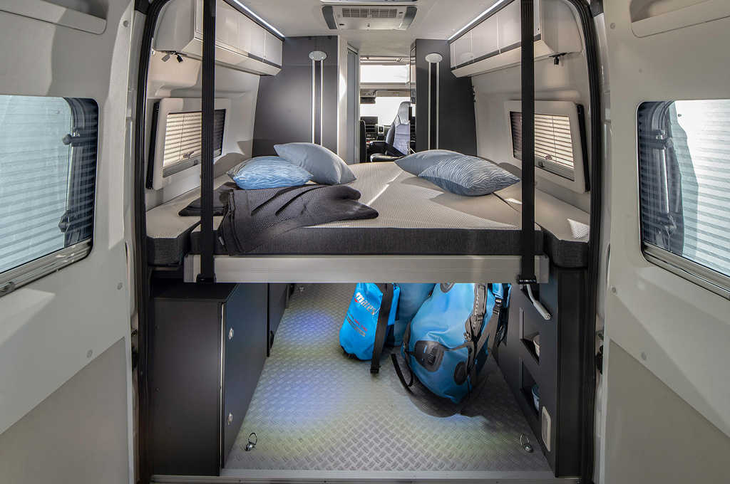 Indipendentemente dalla lunghezza, ogni van della gamma offre un peso in ordine di marcia (MRO) ottimizzato per garantire una guida sicura e confortevole. Con un peso in ordine di marcia minimo di 2638 kg e un massimo di 3080 kg, puoi viaggiare senza preoccupazioni e concentrarti solo sulla bellezza del tuo viaggio.