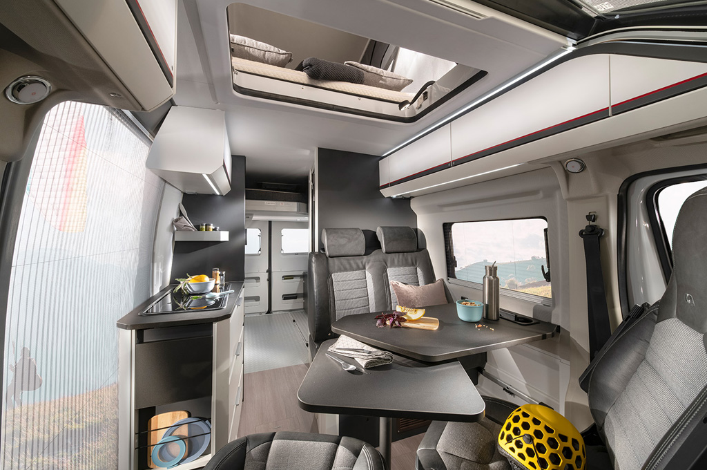 Immergiti in un'esperienza di viaggio senza pari con le caratteristiche innovative di Adria Twin. L'esclusivo SunRoof ti permette di godere della luce del sole e della vista del cielo stellato direttamente dal tuo van, portando la natura dentro la tua esperienza di viaggio. Inoltre, il design a pianta aperta "cabin-loft" crea uno spazio abitativo aperto e arioso, permettendoti di vivere in totale comfort durante il tuo viaggio.