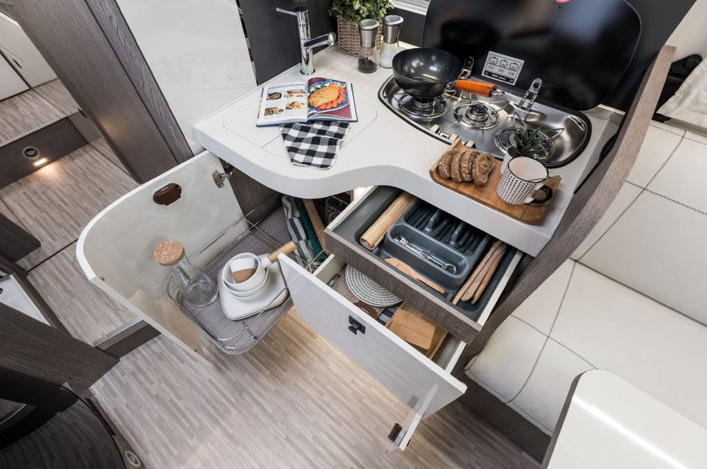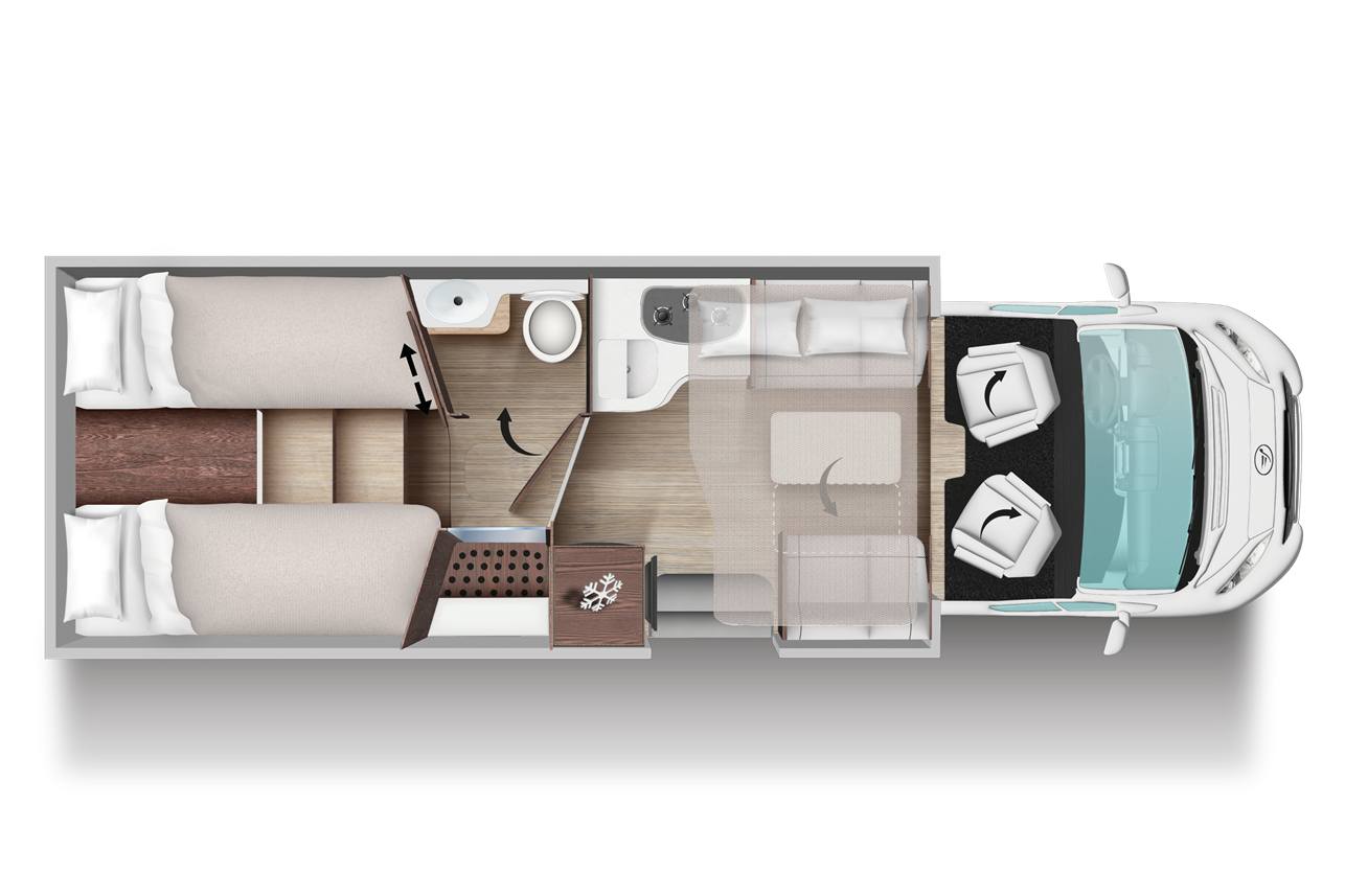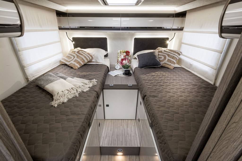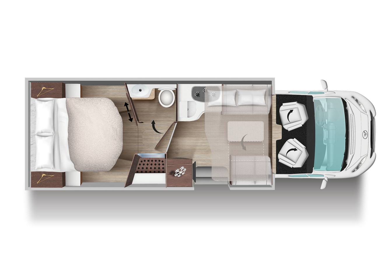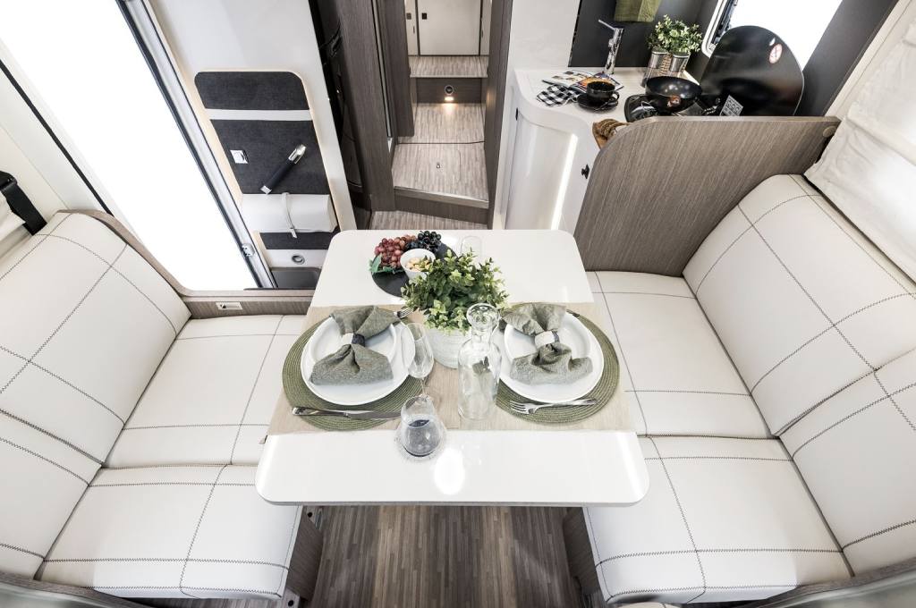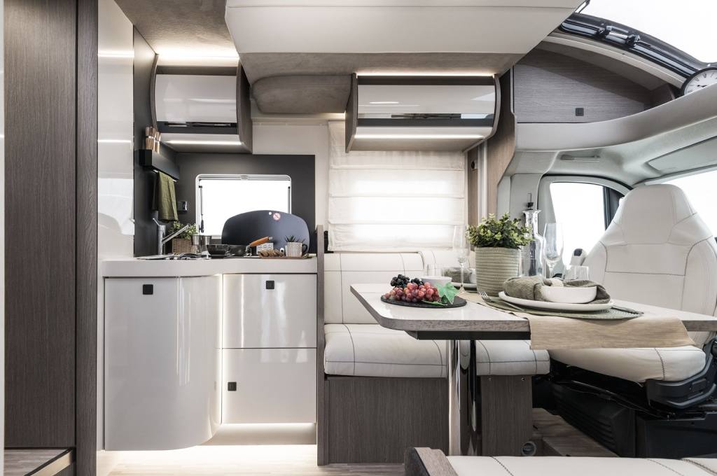 All'interno, gli ambienti sono spaziosi, luminosi e progettati per offrire il massimo comfort. Materiali pregiati come piani in pietra acrilica e profili in legno si uniscono a tecnologie avanzate, come il riscaldamento di ultima generazione Combi 6E, per garantire un viaggio confortevole in ogni stagione.