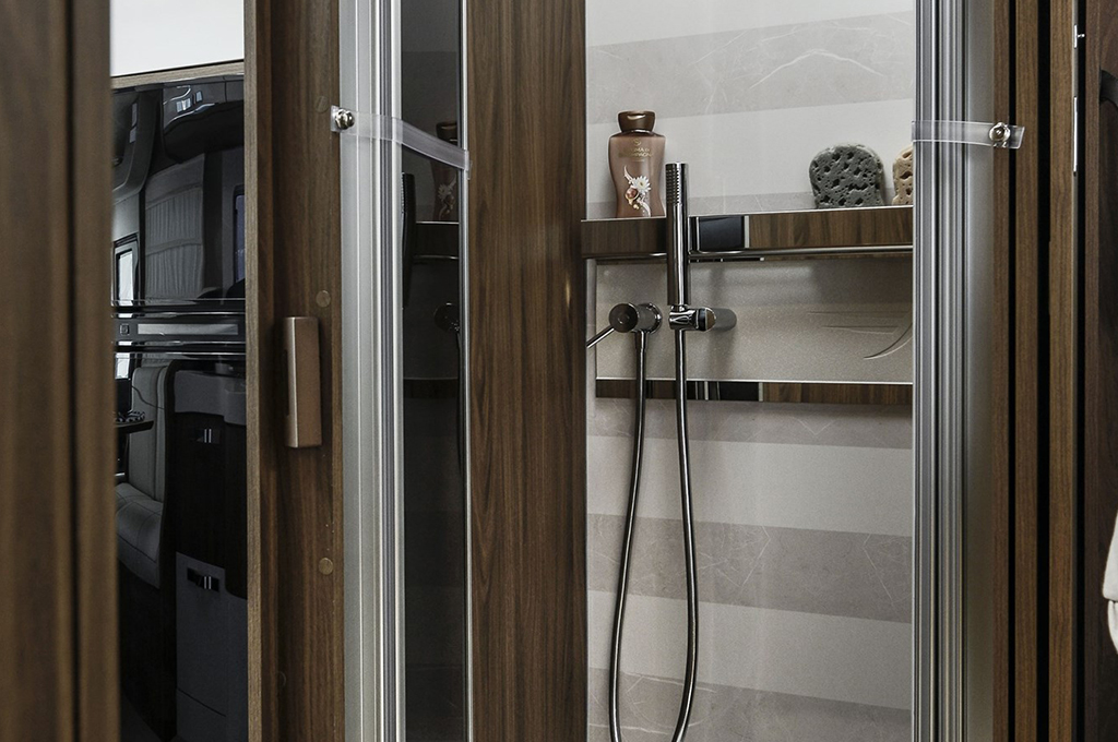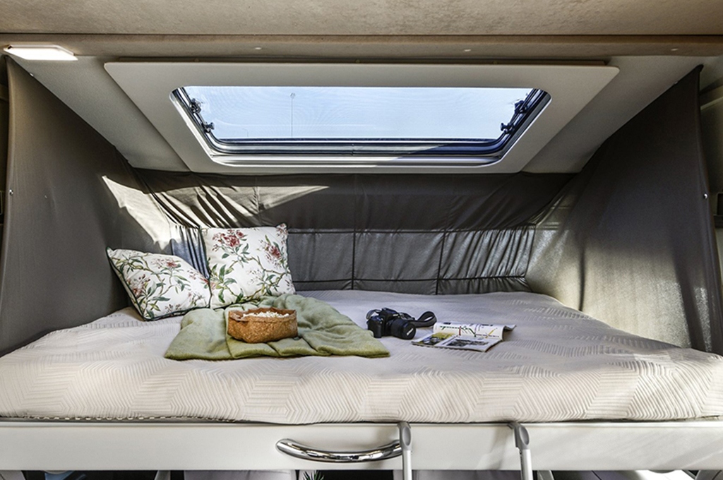 Il tetto in vetroresina, resistente e antigrandine, e il giunto curvo tra parete e tetto aumentano la rigidità e la stabilità, offrendo protezione contro gli agenti esterni. I paraurti verniciati e la fanaleria posteriore a LED con freccia dinamica migliorano sia l'estetica che la sicurezza. La struttura delle pareti esterne in alluminio metallizzato non solo conferisce un aspetto elegante, ma garantisce anche leggerezza, durata e facilità di manutenzione.