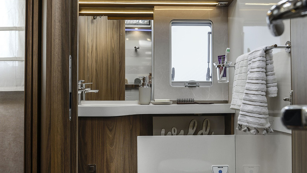 Gli esterni sono altrettanto impressionanti, con una retrocamera per facilitare le manovre, un pannello solare montato con regolatore per garantire un'autonomia energetica durante il viaggio e una zanzariera per la porta d'ingresso per godere appieno della natura circostante senza disturbi. La porta della cellula a due punti con chiusura centralizzata assicura la sicurezza e la praticità, mentre la bandella apribile con gavone offre uno spazio aggiuntivo per riporre gli oggetti durante il viaggio.
