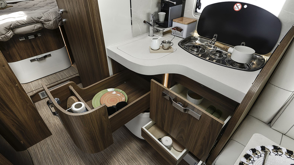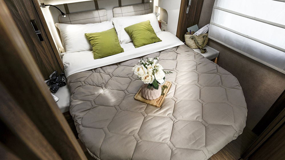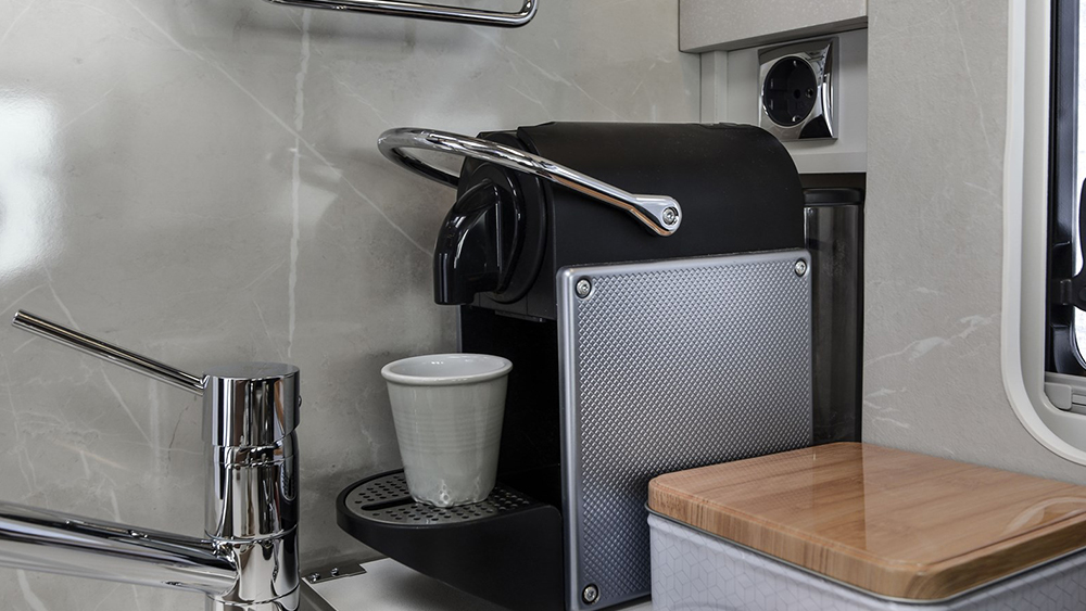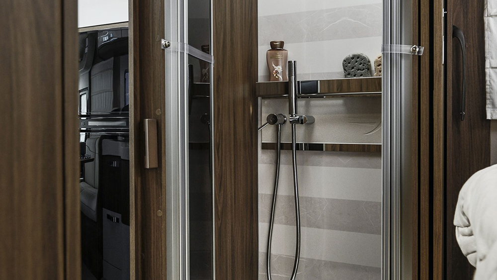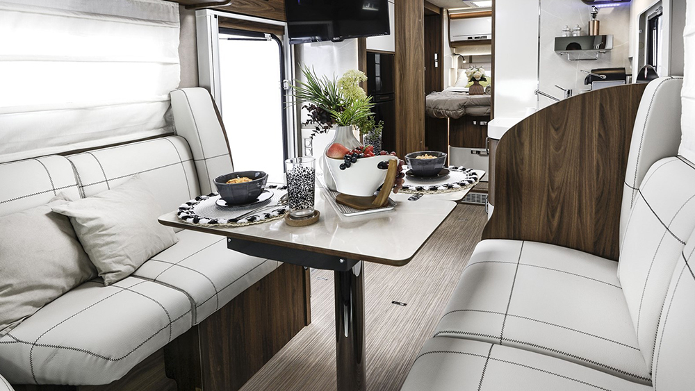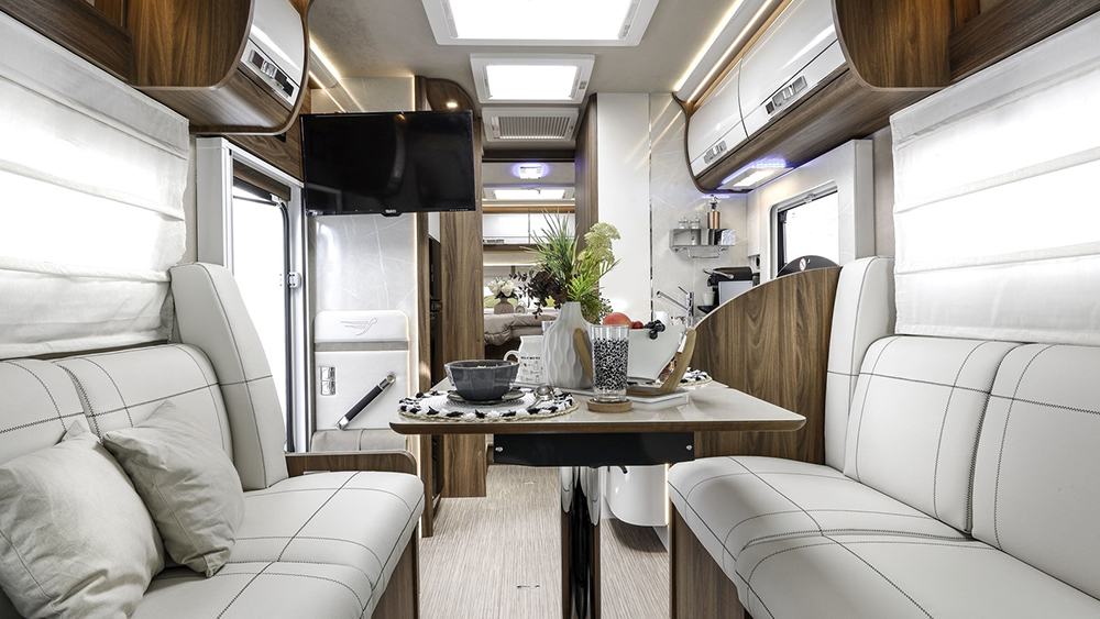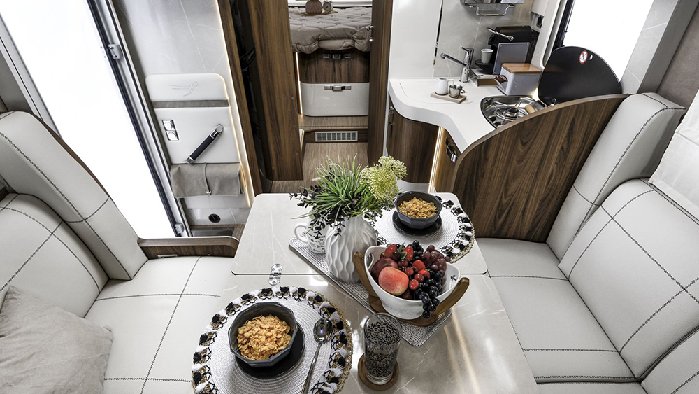 L'esperienza di viaggio è arricchita ulteriormente dalle specifiche del chassis, che includono climatizzatore manuale, airbag per guidatore e passeggero, cruise control con limitatore di velocità e fari a LED DRL. L'interno è curato nei minimi dettagli, con un sistema di oscuranti plissettati per la cabina, un supporto per TV LCD e un sistema letto saliscendi per massimizzare lo spazio durante il giorno.