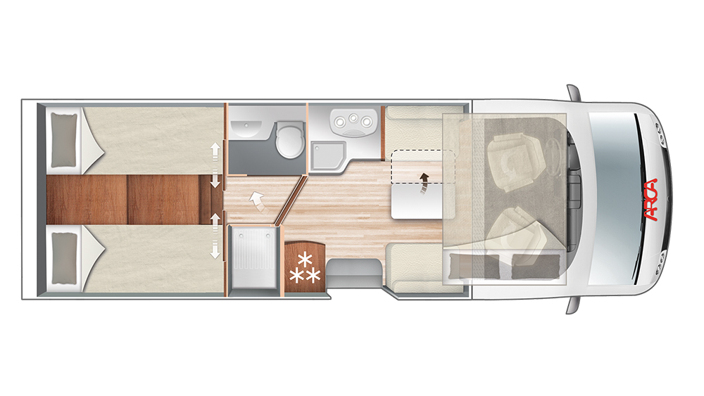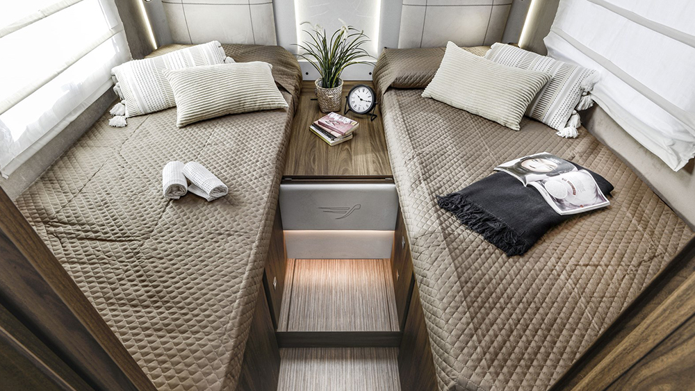 Esternamente, l'eleganza del design si unisce alla praticità, mentre all'interno regna il comfort di un vero e proprio "camper di lusso". Questo profilato con letti gemelli è diventato un vero e proprio bestseller, ideale per coppie o famiglie che desiderano esplorare il mondo con stile e comfort senza pari.