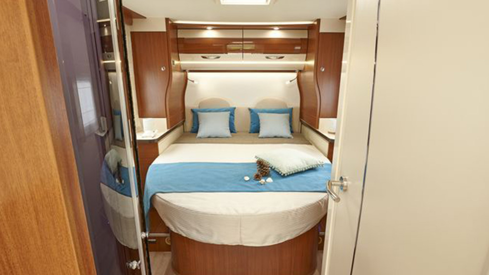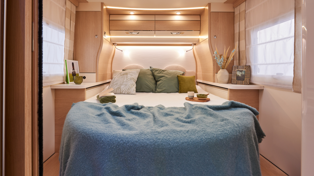 Con due atmosfere contemporanee e qualitative tra cui scegliere, in olmo chiaro o frassino, la gamma Autostar Passion offre un'estetica raffinata e personalizzabile. L'illuminazione a LED a basso consumo integrata nei mobili con porte di armadi verniciati in due colori aggiunge un tocco di eleganza e funzionalità all'ambiente interno.