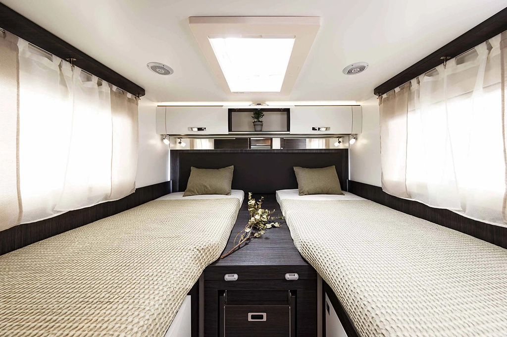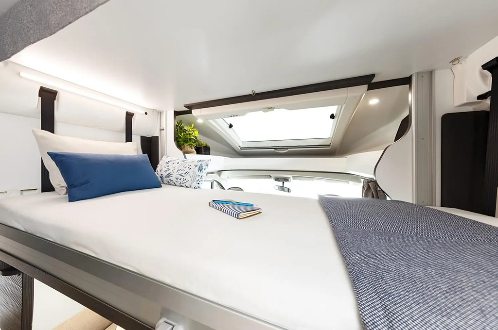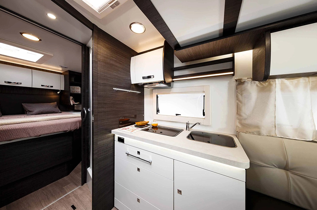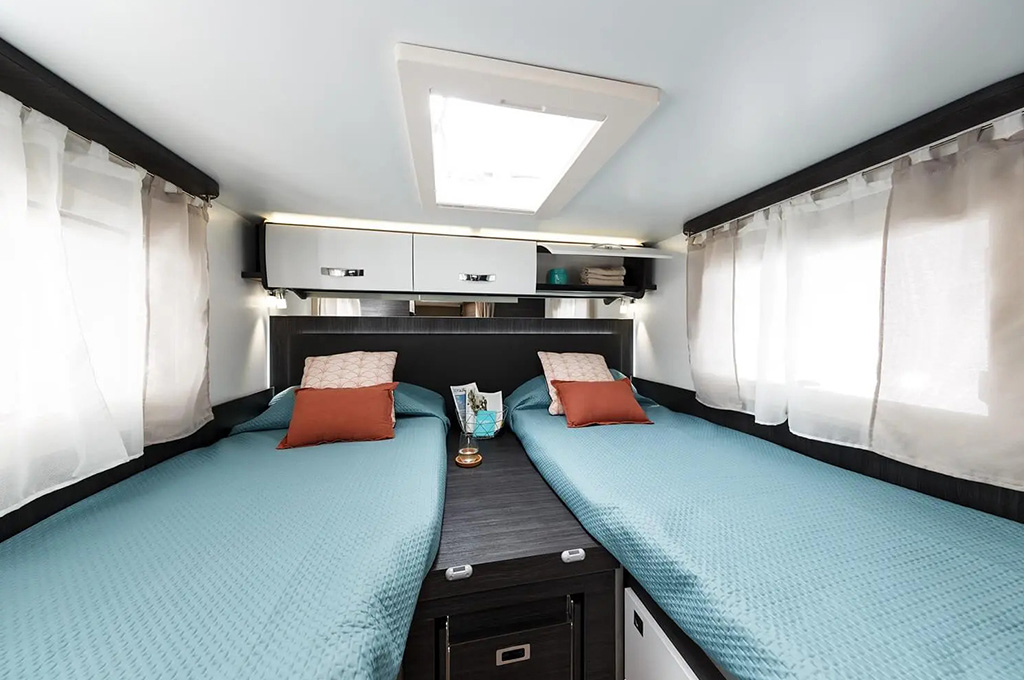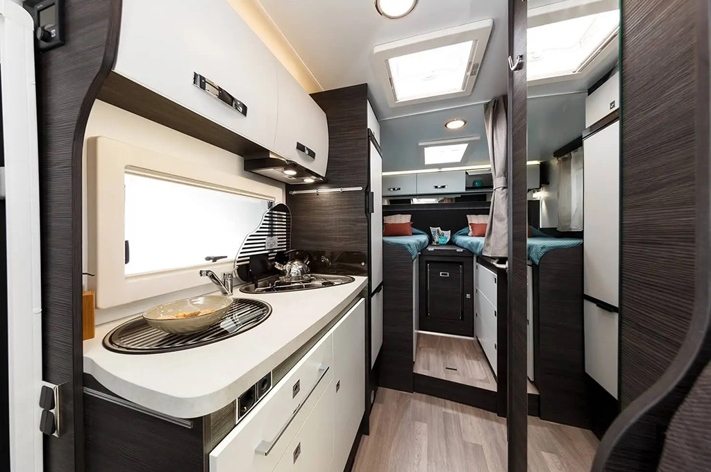 Il sonno è garantito a cinque stelle, grazie a letti matrimoniali o centrali che assicurano il massimo comfort durante il riposo. La cucina è un'area di fantasia, completa di piano cottura a 3 fuochi, aspiratore e una spaziosa dispensa, che permette di preparare deliziosi pasti anche durante i viaggi più lunghi.