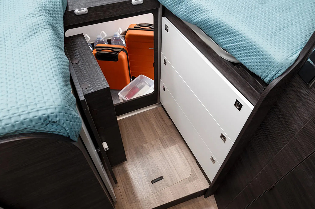 Inoltre, Mileo offre un ampio garage e una capacità di stoccaggio generosa, permettendo di tenere tutto in ordine e di portare con sé tutto il necessario per un'avventura senza confini. In sintesi, Benimar Mileo è la scelta ideale per coloro che cercano l'eccellenza nel viaggio su strada, combinando prestazioni impeccabili con un design raffinato e un comfort senza compromessi.