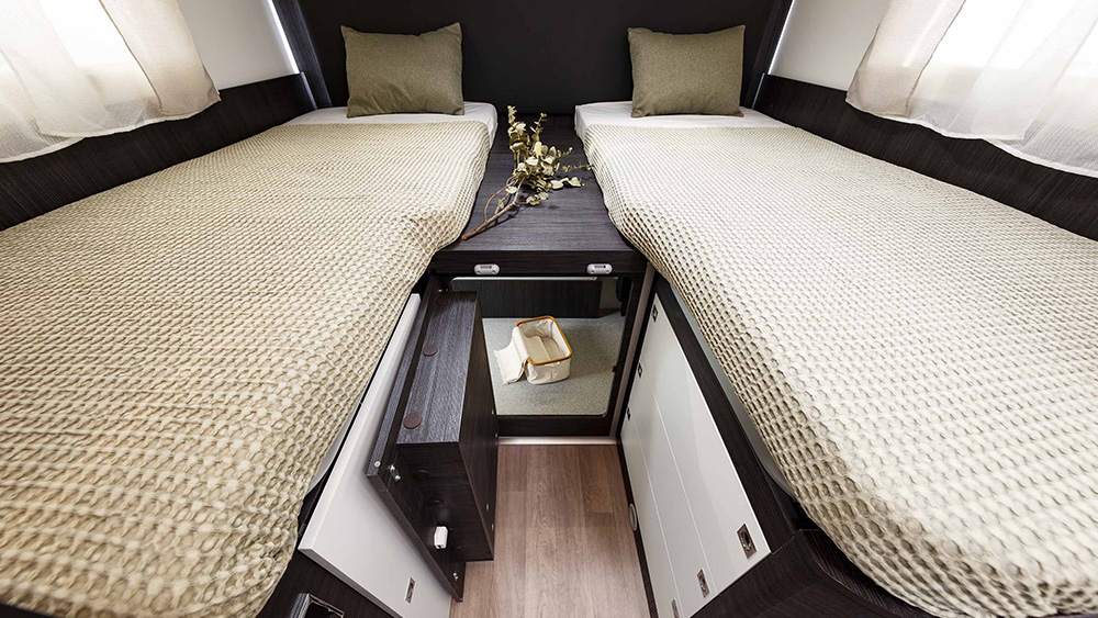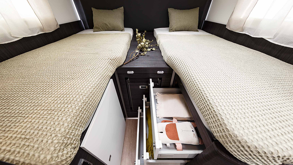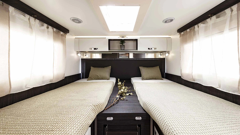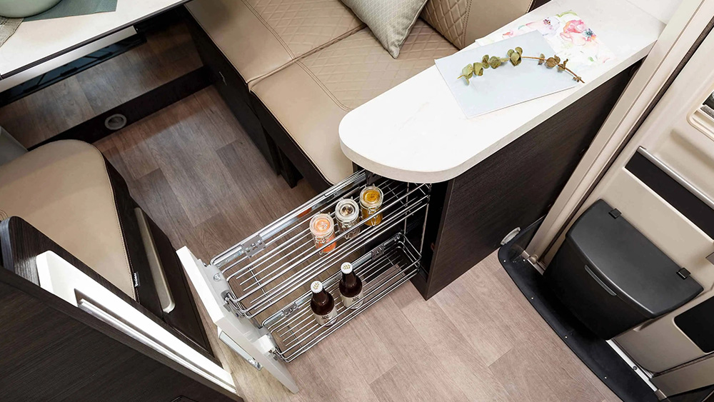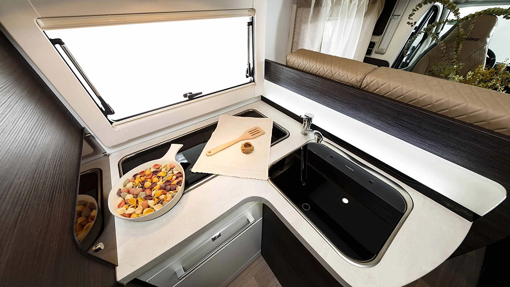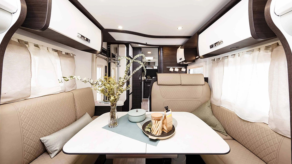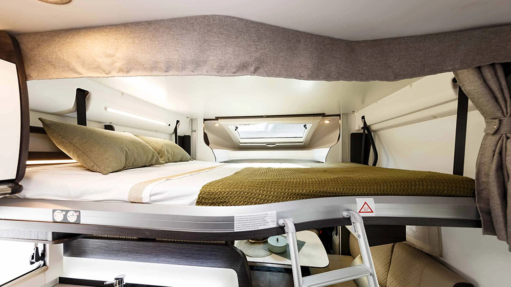 Una delle caratteristiche distintive di questo veicolo è il letto basculante elettrico da 160 cm, che offre due posti letto con un peso massimo di 230 kg, garantendo una notte riposante a chiunque lo utilizzi. La dinette a L fornisce uno spazio accogliente per i pasti e il tempo libero durante il viaggio, mentre la presenza di ISOFIX sui sedili del dinette assicura la sicurezza dei più piccoli.
