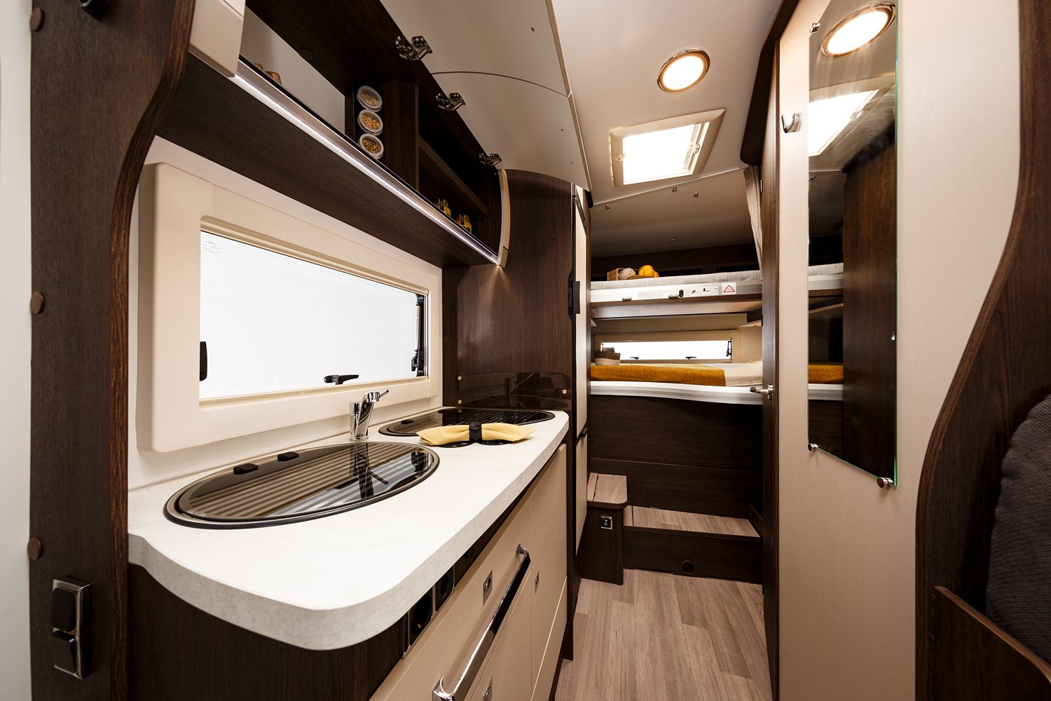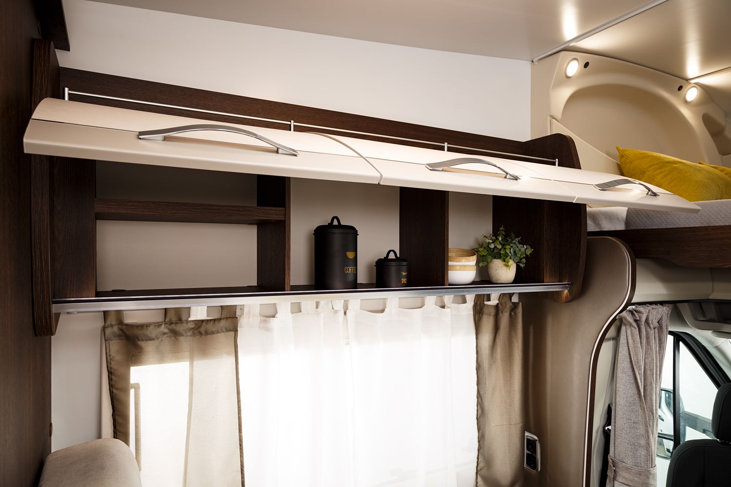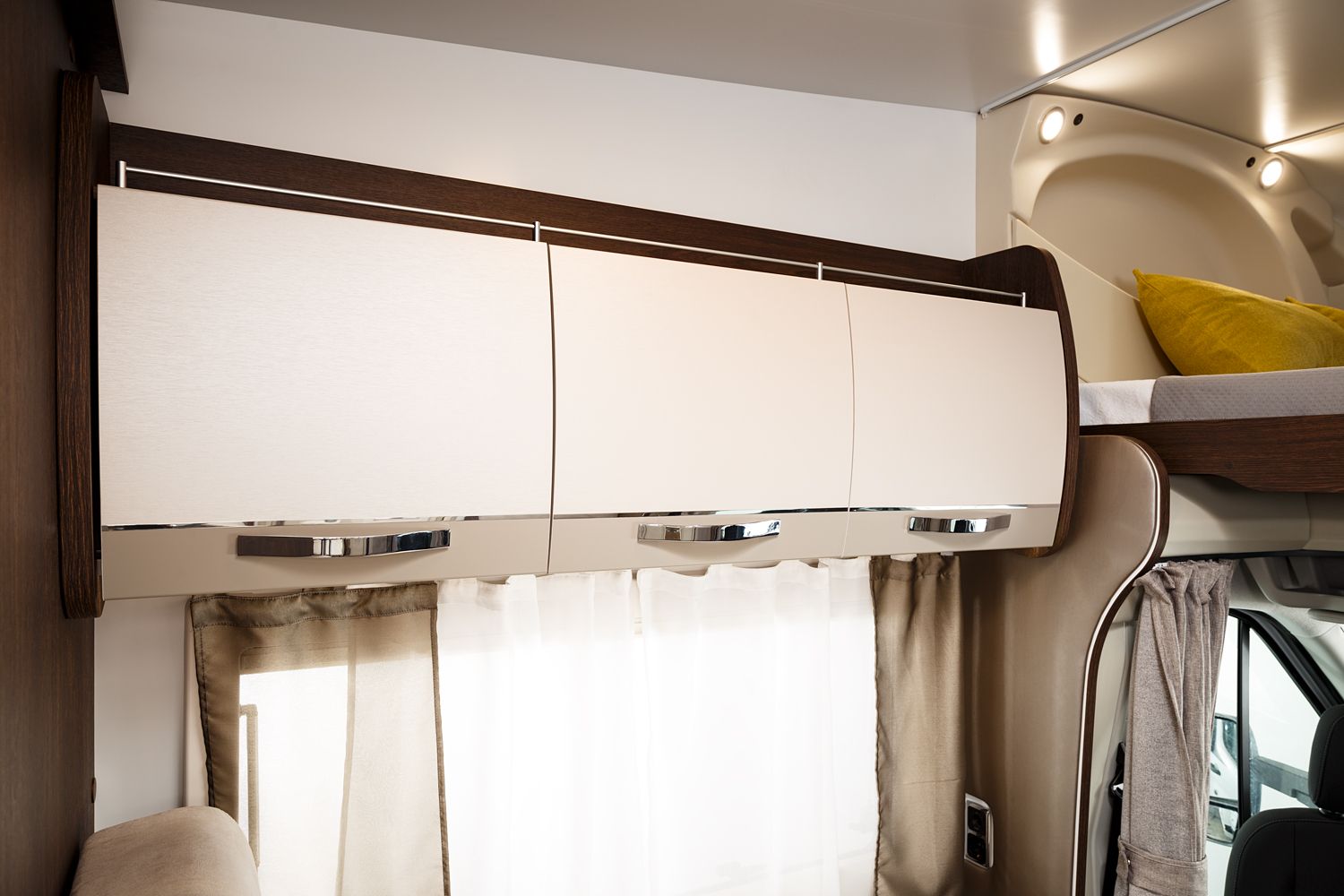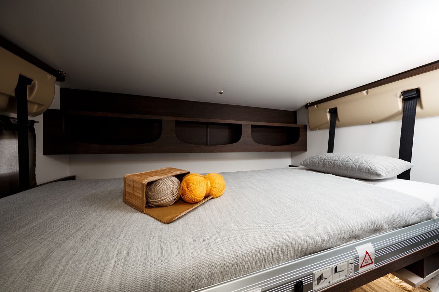 Una delle caratteristiche distintive di questo veicolo è il suo letto mansarda da 155 cm, che offre un confortevole e accogliente rifugio sopraelevato per la notte. Completando il comfort notturno, il letto basculante elettrico aggiunge un ulteriore posto letto, con una capacità massima di 150 kg, garantendo che nessun viaggiatore debba rinunciare a una buona notte di sonno.