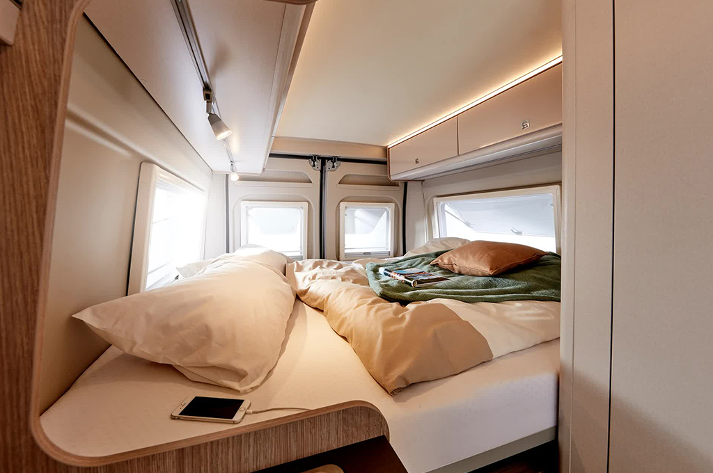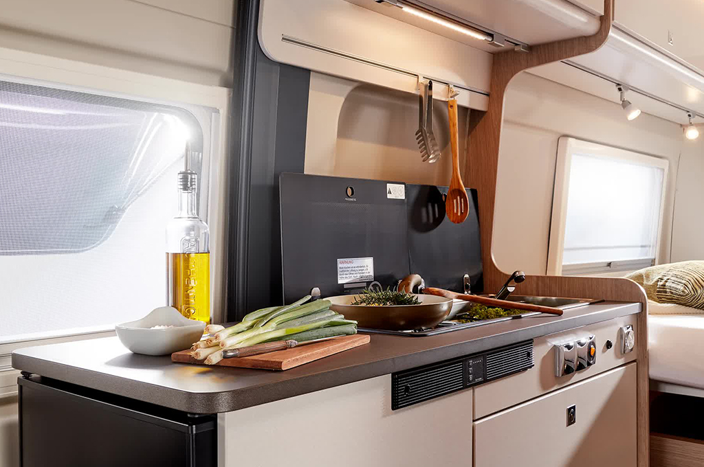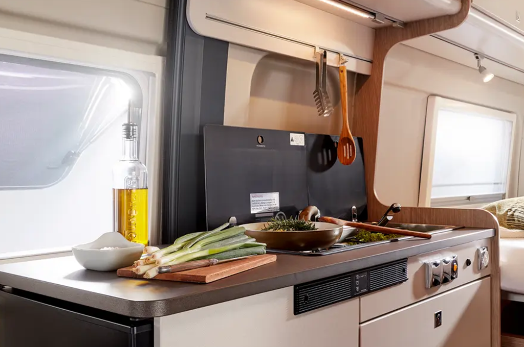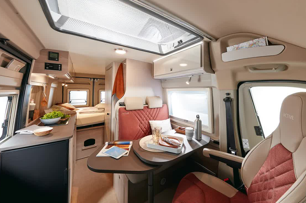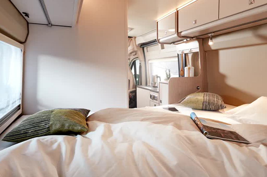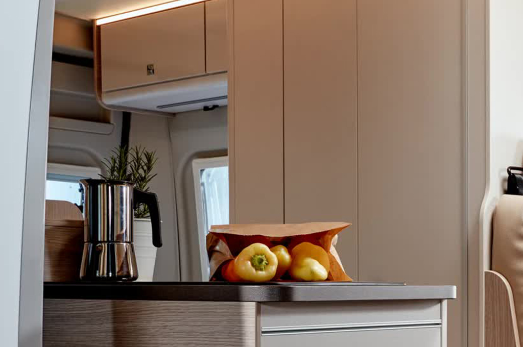 La gestione dello spazio è ottimizzata grazie a soluzioni intelligenti per lo stivaggio. Armadi pensili funzionali, una spaziosa zona di carico posteriore con 4 occhielli per le imbracature e ampi armadi variabili a seconda del modello assicurano che ogni oggetto trovi il suo posto. L'ordine è garantito, lasciando a voi solo il piacere del viaggio. Gli interni vantano punti di forza come l'illuminazione LED, due prese USB e materassi a schiuma fredda per un sonno confortevole. Il letto sul tetto opzionale e i doppi letti posteriori, disponibili in diverse disposizioni, offrono flessibilità e comfort. Inoltre, la sicurezza dei più piccoli è garantita con il sistema Isofix. Il Bürstner Campeo è la scelta perfetta per chi desidera staccare la spina e godersi la libertà del viaggio.
