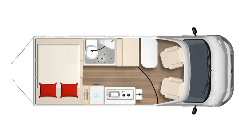 Con una gamma di configurazioni che includono sia letti singoli che matrimoniali, un'opzione di bar con credenza e tavolo, o persino un frigorifero alto aggiuntivo, non dovrete rinunciare a nulla nel vostro viaggio con Eliseo. L'illuminazione indiretta dimmerabile e gli spaziosi posti a sedere creano un'atmosfera accogliente e rilassante, perfetta per rigenerarsi dopo una giornata piena di avventure.