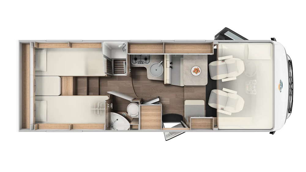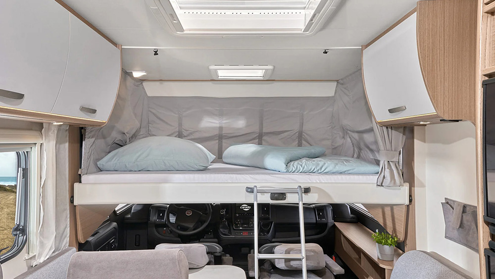 I cassetti della cucina offrono uno spazio di stivaggio sicuro e accessibile, con la comodità del meccanismo Servo Soft per un'apertura e chiusura agevole. In definitiva, Carado I447 è il compagno di viaggio ideale per esplorare nuovi orizzonti con stile e comfort senza compromessi.