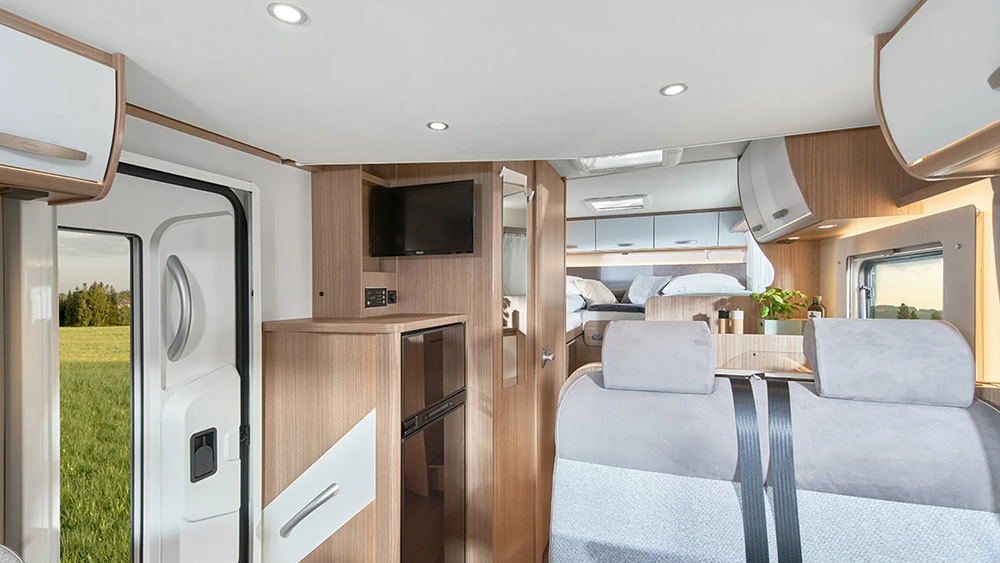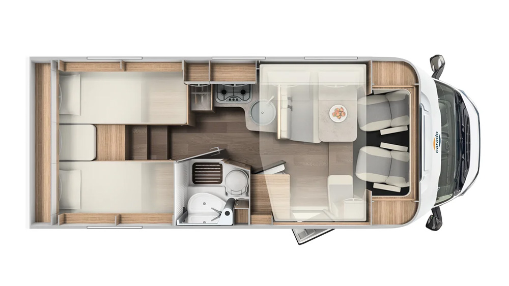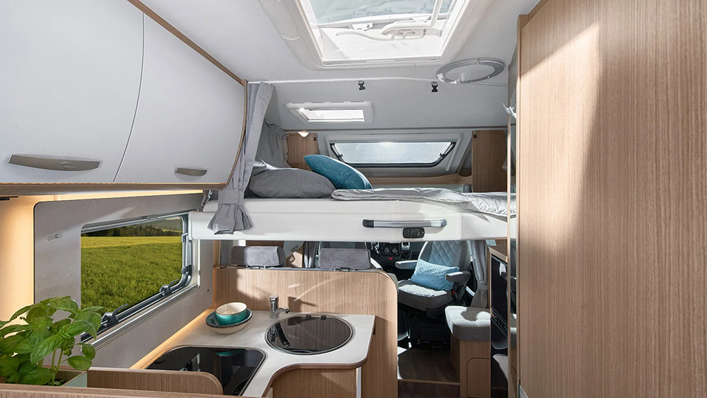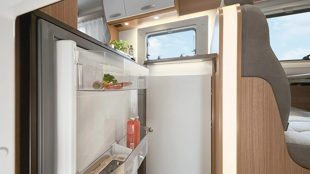 I cassetti della cucina offrono spazio di stivaggio sicuro e pratico, con la tecnologia Servo Soft che assicura un'apertura e una chiusura silenziosa e controllata. Con il suo ampio garage e l'elevato carico consentito, Carado T338 offre più spazio di stivaggio per tutto ciò di cui si ha bisogno durante le vacanze, rendendo ogni viaggio un'esperienza confortevole e indimenticabile.