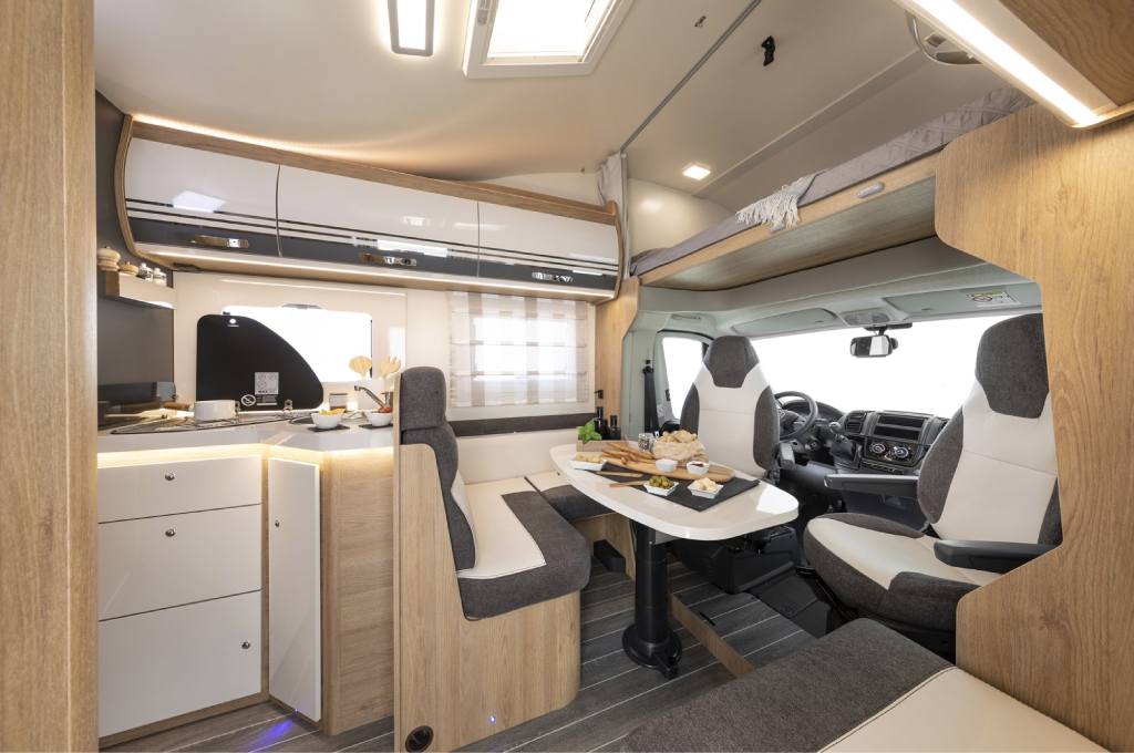 Le sue dimensioni generose si traducono in spazio interno ottimizzato per il comfort di cinque persone, con cinque posti omologati e una vasta gamma di letti, inclusi un letto posteriore spazioso e un letto supplementare dalla dinette trasformabile. L'altezza interna di 2080 mm consente un ambiente arioso e accogliente.