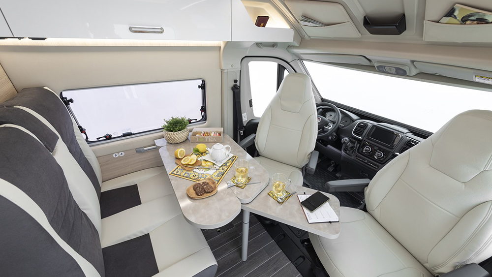 CI Kyros Evo Limited 2 è un camper che unisce eleganza e funzionalità, basato sulla robusta meccanica del Fiat Ducato. Con il suo motore da 2,2 MJ da 140 CV, offre una potenza affidabile per ogni avventura. Con una massa a vuoto di 2773 kg, è agile e maneggevole su strada.