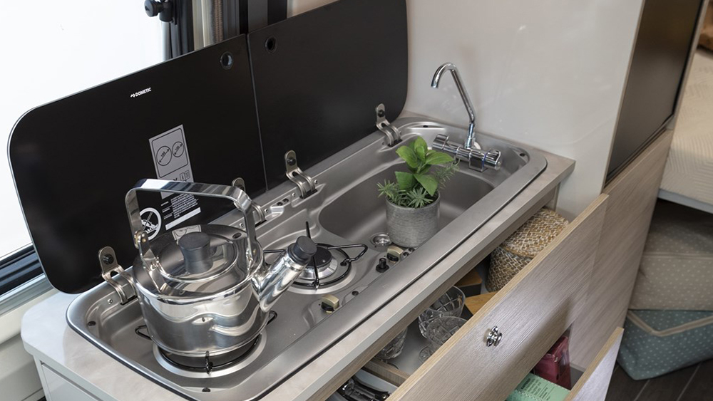 Dotato di un frigorifero a compressore da 84 litri (opzionalmente espandibile a 138 litri), assicura che le tue provviste rimangano fresche in qualsiasi momento. Il riscaldamento standard Webasto Air Top 40 garantisce comfort termico in tutte le stagioni.