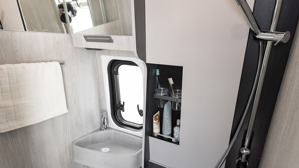 L'impiantistica comprende un frigorifero a compressore da 70 litri e un sistema di riscaldamento standard COMBI 4KW a gas, ideale per garantire comfort termico in tutte le stagioni. I serbatoi di acqua chiara e grigie hanno una capacità rispettivamente di 85 e 20 litri, assicurando un'autonomia adeguata durante i viaggi.
