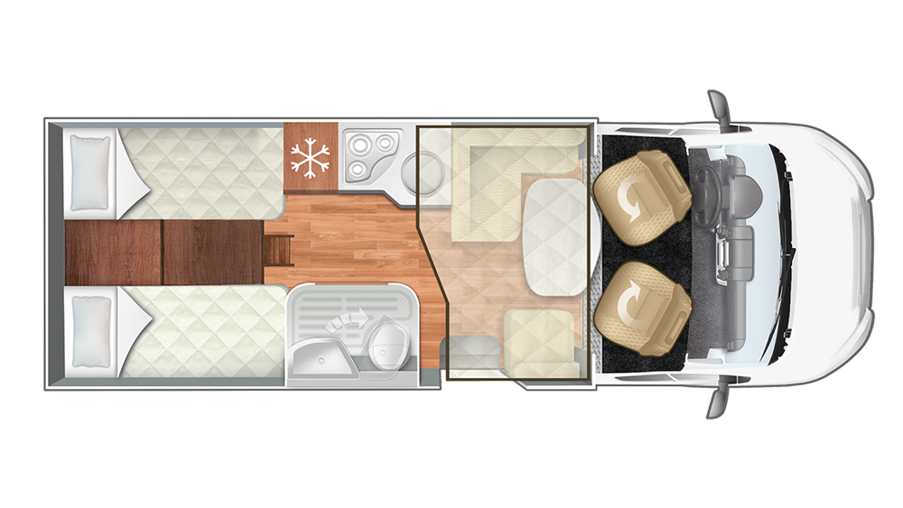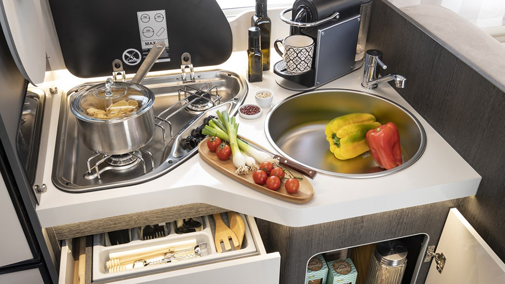 Le sue dimensioni generose e i cinque posti omologati assicurano spazio e comfort per tutta la famiglia. Con posti letto per cinque persone e varie opzioni di configurazione, incluso un letto supplementare dalla dinette trasformabile, offre flessibilità per ogni viaggio.