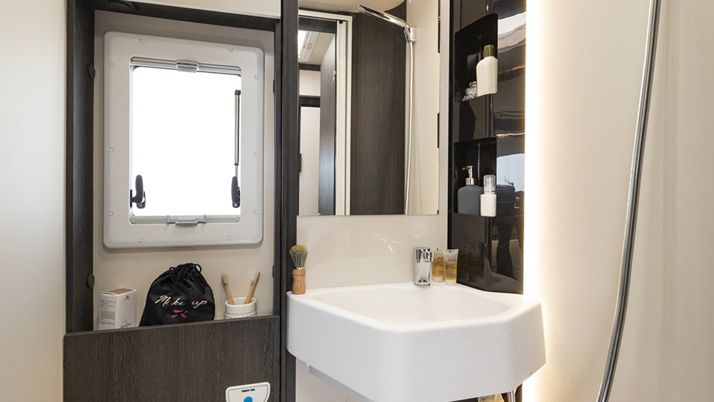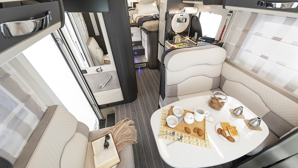 Dotato di un design intelligente, il Magis Elite 85 XT presenta una serie di caratteristiche premium, tra cui sedili girevoli in pelle, climatizzatore manuale, airbag per guidatore e passeggero e cruise control con limitatore di velocità. Il comfort è elevato grazie al riscaldamento standard Truma Combi 4 Gas e al frigorifero trivalente automatico.