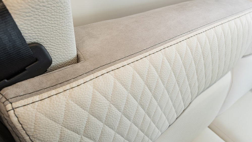 L'interior è progettato per il massimo comfort, con materiali di alta qualità e dettagli curati. Dotato di climatizzatore manuale, sedili girevoli e sistema di riscaldamento Truma Combi 4 Gas, assicura un clima piacevole in qualsiasi condizione atmosferica.