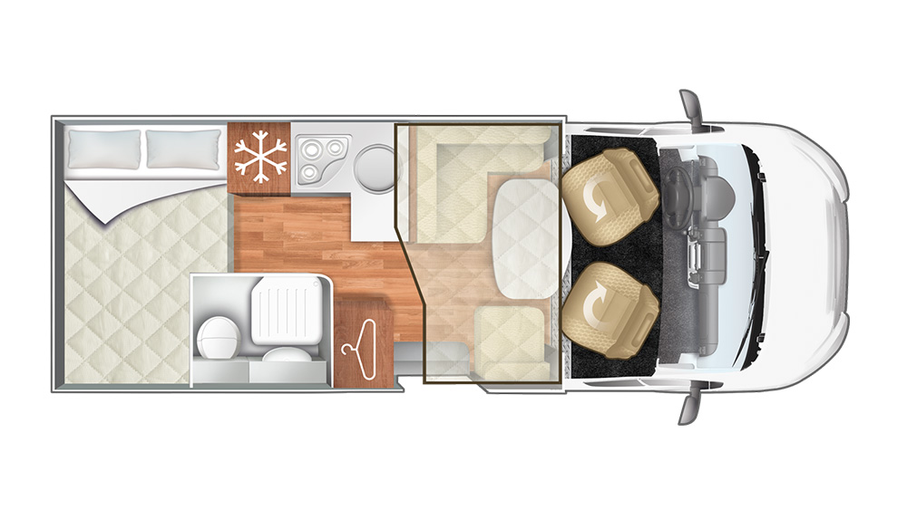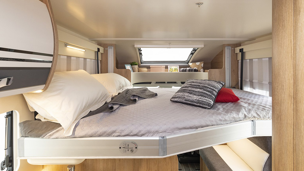 Le dimensioni generose e gli spazi ben organizzati permettono di accogliere fino a 5 passeggeri e di offrire un comfort di alto livello. I letti, dalle dimensioni variegate e dalle trasformazioni intelligenti, garantiscono un riposo rigenerante durante i viaggi. Con soluzioni come il letto supplementare dalla dinette trasformabile e il letto basculante, lo spazio è sfruttato al massimo.