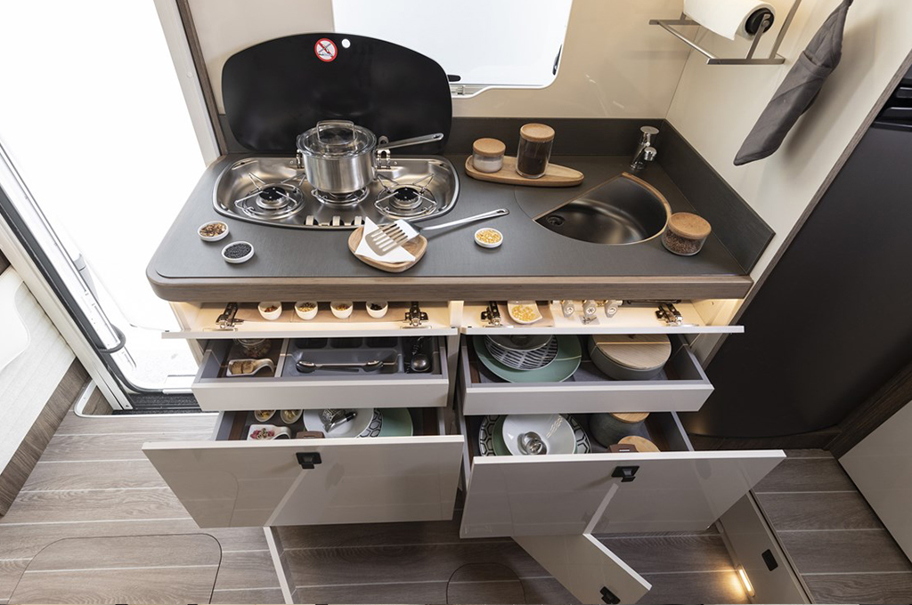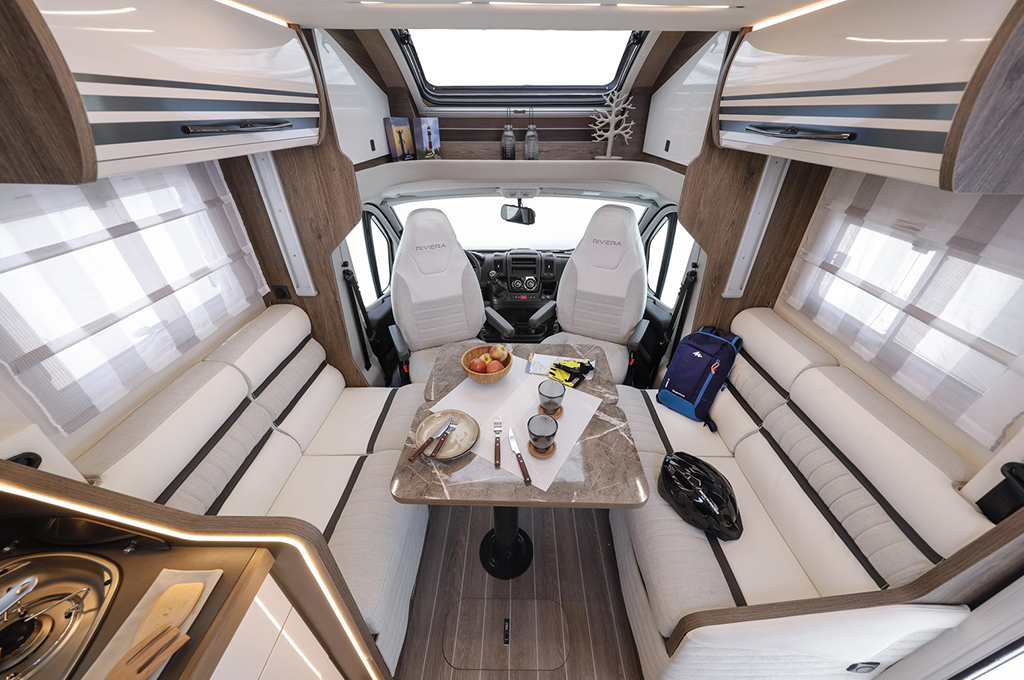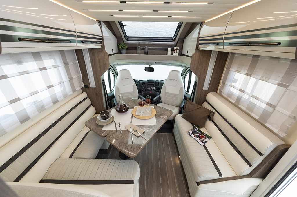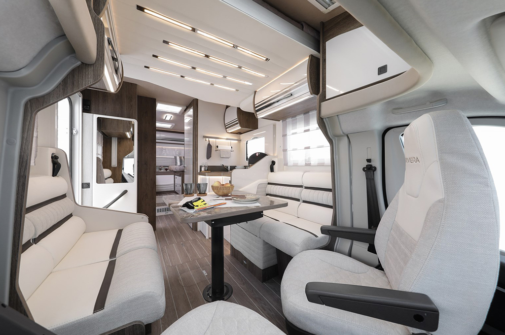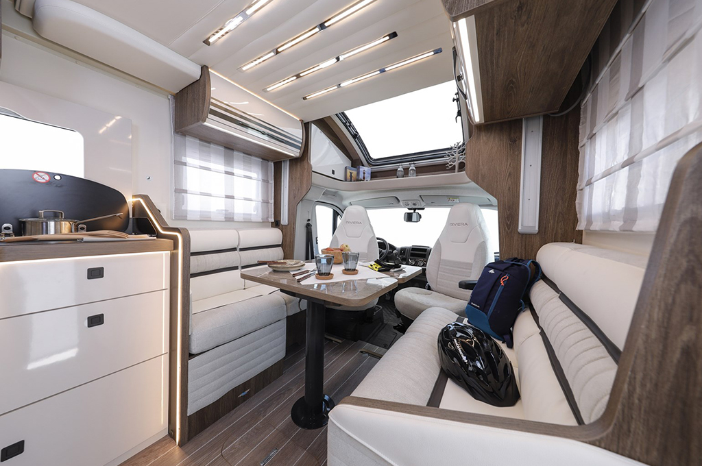 In termini di design, la Riviera si distingue per le sue linee moderne e raffinate, che si sposano perfettamente con l'innovazione tecnica e le prestazioni eccezionali. Materiali pregiati e una cura meticolosa per i dettagli conferiscono al camper un'eleganza senza tempo, mentre le caratteristiche ergonomiche e il comfort senza compromessi assicurano un'esperienza di viaggio di prima classe.
