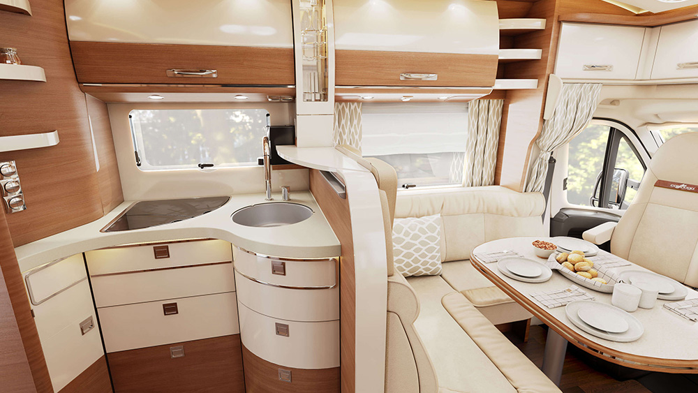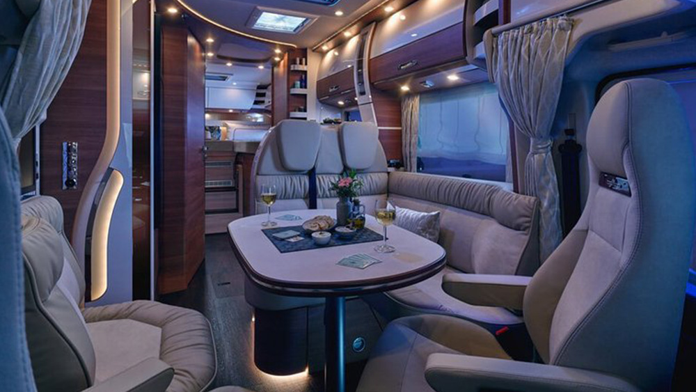 Carthago C-Line T 4.9 LE incarna l'eccellenza nel mondo dei veicoli ricreazionali, coniugando comfort, design e funzionalità in un unico pacchetto straordinario. All'interno, il gruppo sedute a L offre uno spazio conviviale e accogliente, arricchito da un'ampia panca laterale e un tavolo rettangolare con eleganti rifiniture cromate, perfetto per gustare pasti o trascorrere piacevoli momenti di relax. La scarpiera estraibile integrata nello zoccolo della panca rappresenta un'innovativa soluzione di stivaggio per fino a quattro paia di scarpe, garantendo ordine e praticità.