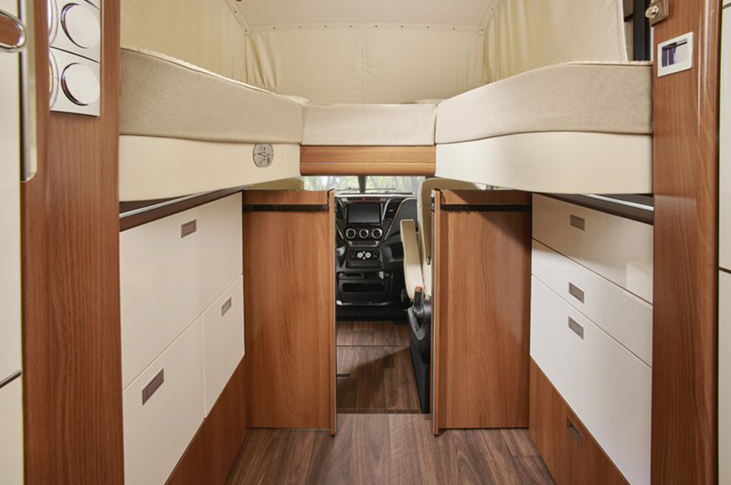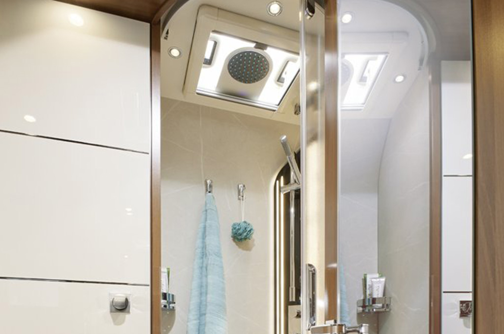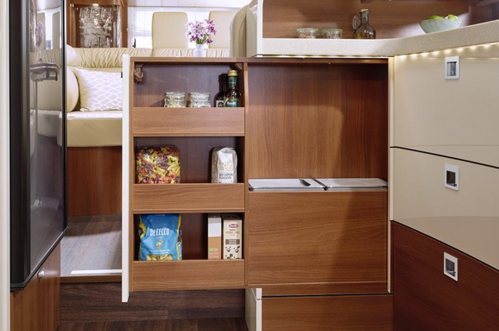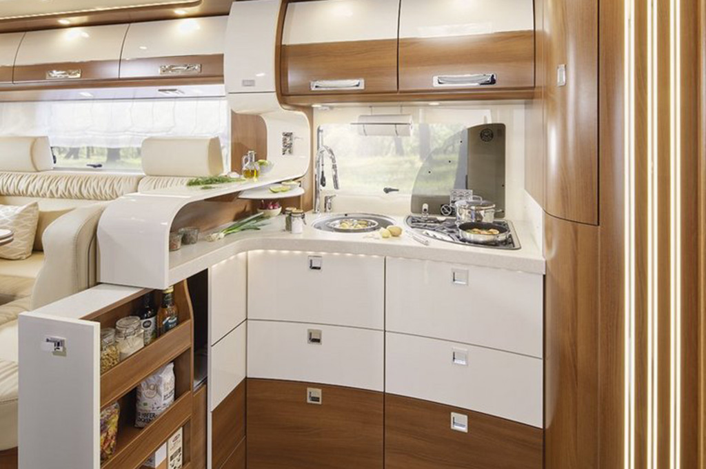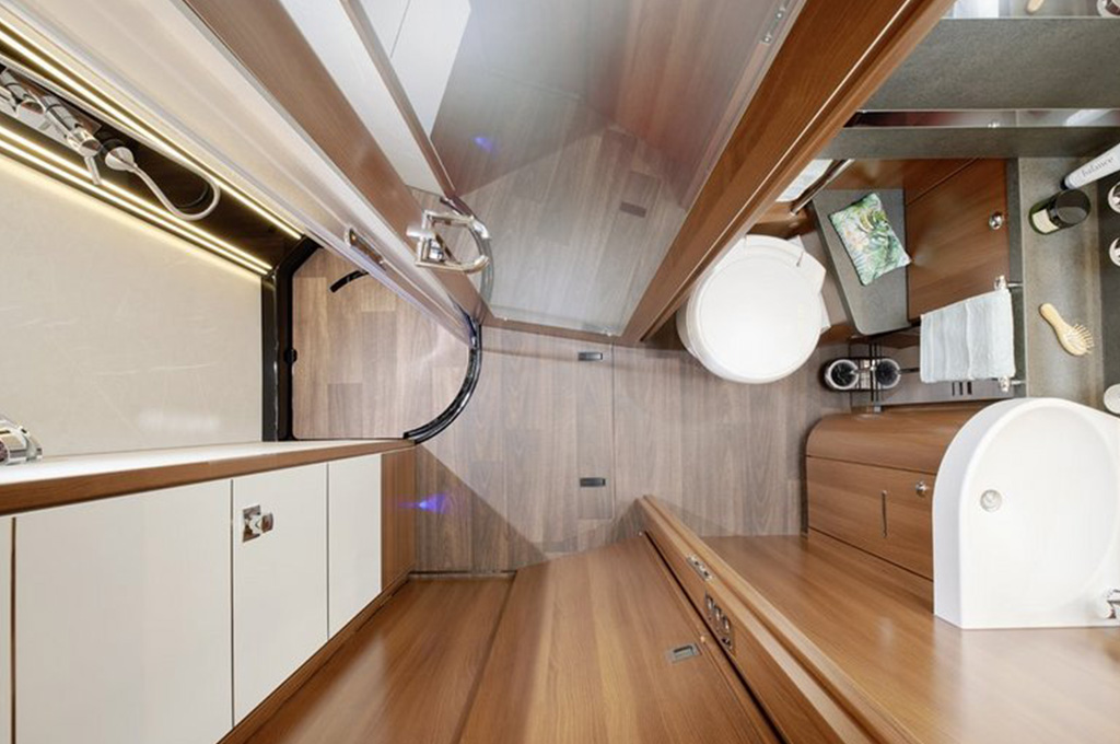 La cucina extra large con il suo elegante piano arcuato e il bagno spazioso Comfort aggiungono un tocco di eleganza domestica, completando il layout lussuoso del Liner for Two. Non solo bellezza e comodità, ma anche praticità: il doppio pavimento ospita una cantina enorme, riscaldata e con spazi di carico generosi, garantendo che non manchi lo spazio per le necessità di viaggio.