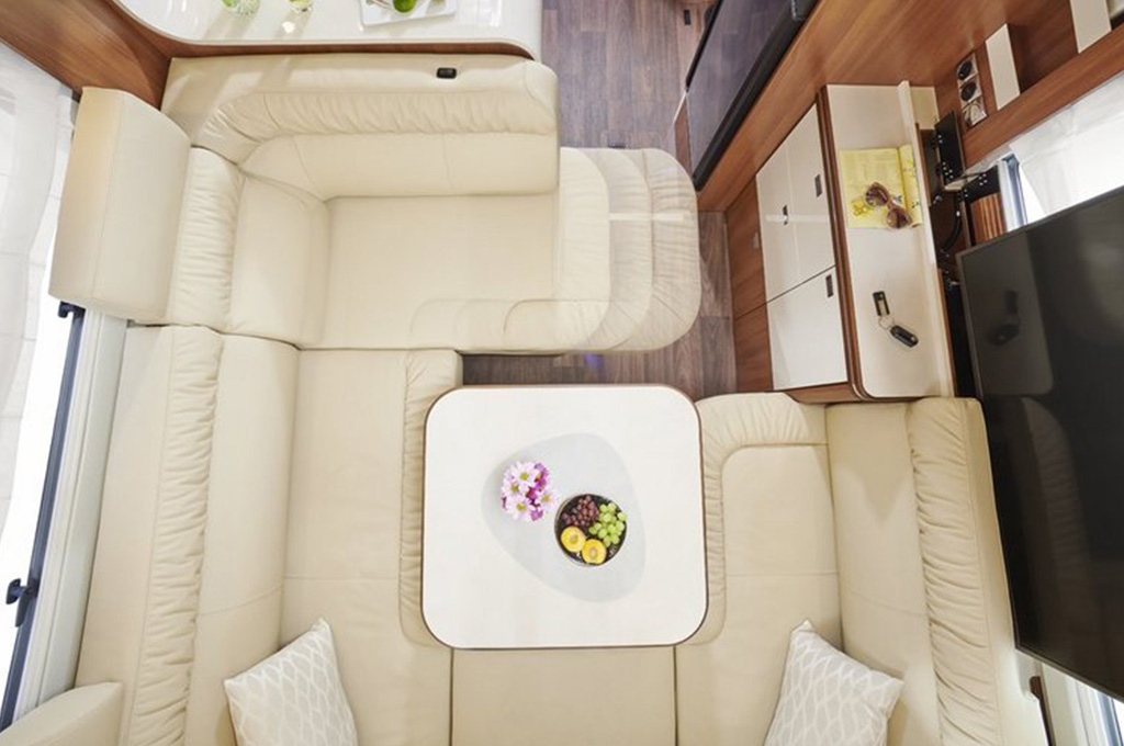 Il Carthago Liner for Two è un capolavoro di lusso e innovazione nel mondo dei camper integrati, progettato per offrire comfort straordinario e raffinatezza senza pari. Grazie al suo esclusivo concetto dei 4 ambienti, questo veicolo eccezionale delinea un'esperienza di viaggio senza compromessi. Nella zona anteriore, i letti singoli abbassabili elettricamente offrono flessibilità e spazio, mentre al retro, un invitante gruppo sedute circolare lounge crea l'atmosfera ideale per rilassarsi o intrattenersi.
