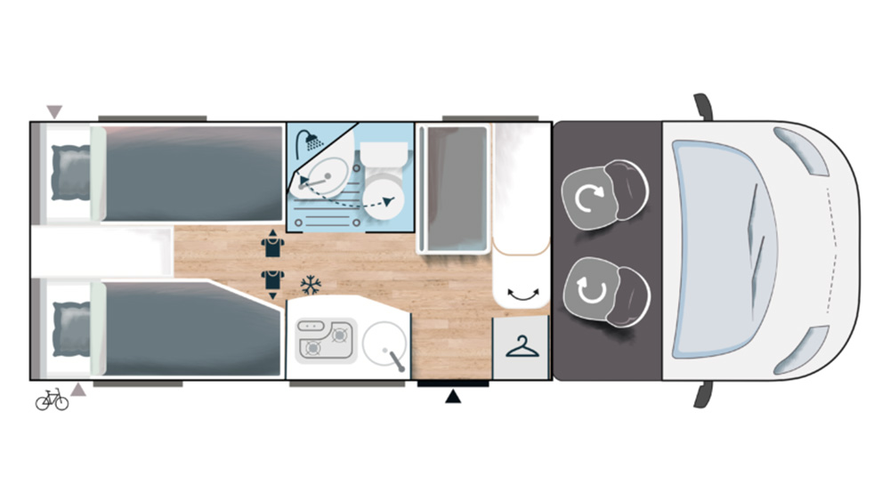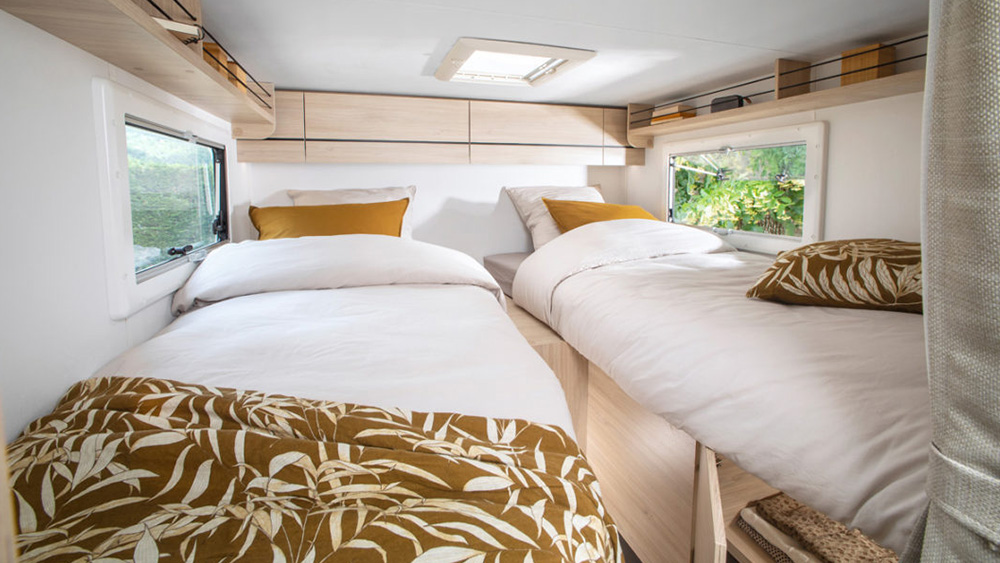 All'interno, il S217 vanta una distribuzione degli spazi ottimizzata, con numerosi vani di stivaggio per mantenere tutto in ordine durante il viaggio. Il bagno modulabile è un esempio di versatilità, mentre i letti gemelli trasformabili in un ampio letto "king size" offrono il massimo comfort durante il riposo notturno.