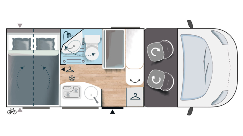 La struttura IRP garantisce una resistenza superiore agli agenti atmosferici, mentre i cerchi in acciaio 16" con copricerchi antracite conferiscono un tocco di eleganza al design esterno. Il sistema di riscaldamento utilizza il carburante del veicolo, garantendo un comfort costante durante il viaggio.
