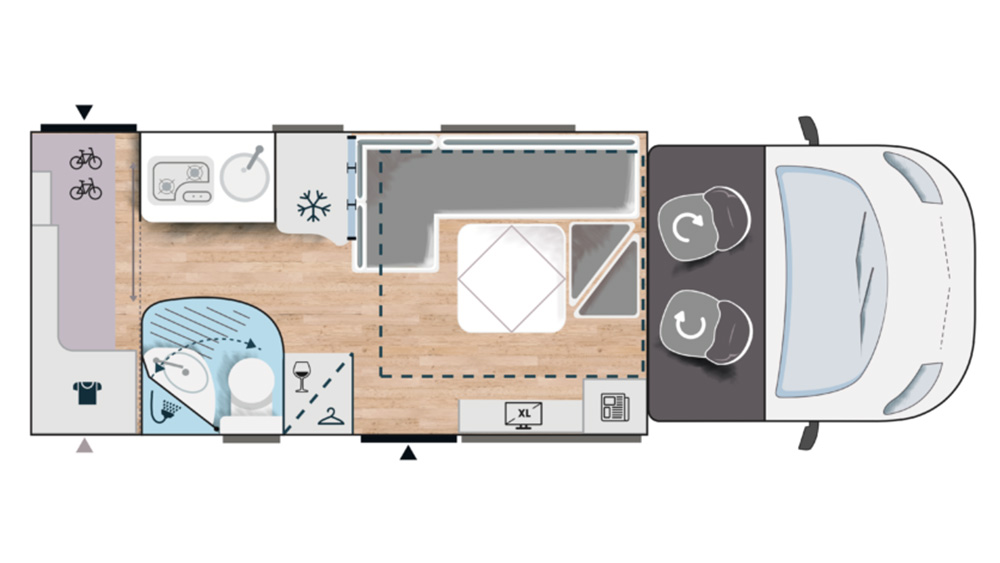 Challenger 240 si distingue dagli altri profilati per una serie di caratteristiche uniche che lo rendono un compagno ideale per avventure su strada. Questo veicolo offre molto più di un semplice accesso principale: con un accesso di servizio per garage e vani portaoggetti, si dimostra incredibilmente pratico per organizzare il tuo equipaggiamento in modo efficiente. L'innovativa vetrata interna che separa la cucina dal salone a U modulabile, con ben 8 posti "aperitivo" di serie, è una vera rivoluzione nello spazio abitativo di meno di 7 metri, offrendo un'esperienza di viaggio confortevole e funzionale.
