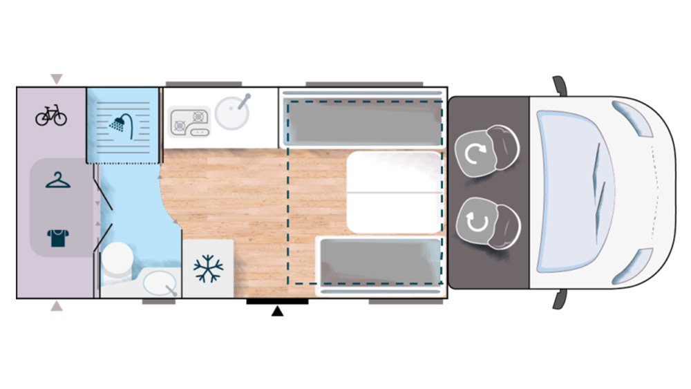 Con i pacchetti opzionali come il Pack Arctic, che include un riscaldamento a pavimento e un serbatoio delle acque grigie isolato e riscaldato, puoi estendere le tue avventure anche alle condizioni più estreme. E grazie al Pack Connect, con radio DAB/Bluetooth e schermo touchscreen, puoi rimanere connesso ovunque tu vada.