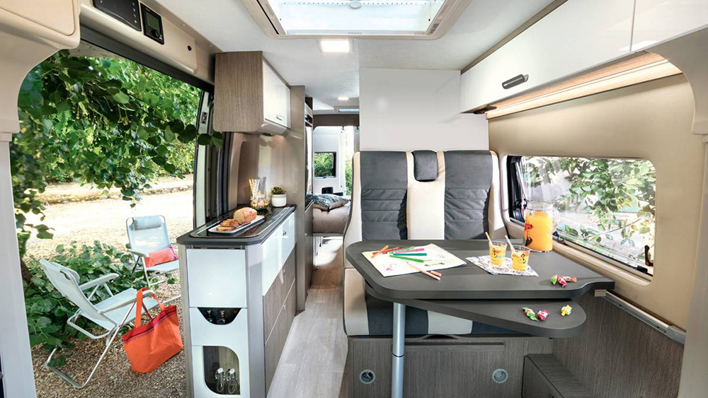 Con funzionalità come il regolatore e il limitatore di velocità, l'ESP e l'Eco pack che include il sistema Stop&Start, l'alternatore intelligente e la pompa carburante a gestione elettronica, il V114 garantisce prestazioni ottimali ed efficienza energetica. L'oblò panoramico o i due lucernari, insieme alle finestre doppio vetro con combinato oscurante/zanzariera, offrono vedute mozzafiato e un controllo completo sulla luminosità e la privacy all'interno.