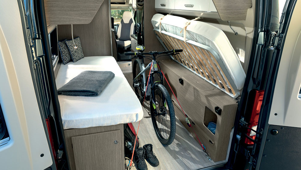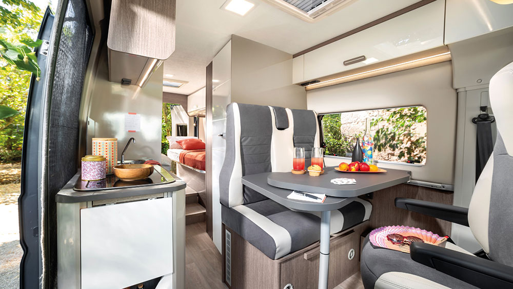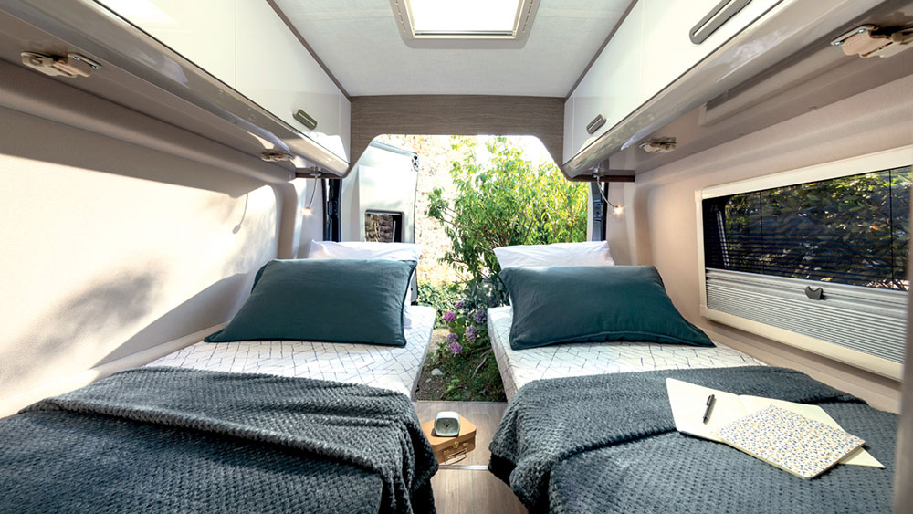 Chausson V697 First Line è un van compatto e versatile che si distingue per l'ingegnosa progettazione degli spazi interni. Con una lunghezza di soli 6,36 metri, Chausson è riuscito a inserire due letti gemelli di ampie dimensioni, offrendo una soluzione ideale per una coppia amante dell'avventura e della discrezione. Il modello vanta numerosi spazi di stivaggio, tra cui un pratico doppio fondo sotto il letto, perfetto per riporre tavolo e sedie da campeggio.