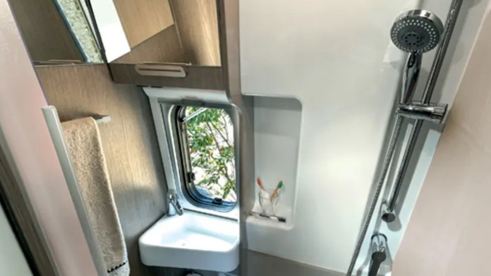 Il V697 è dotato di un oblò panoramico (o due lucernari), finestre a doppio vetro con combinato oscurante/zanzariera e oscuranti isotermici per l'interno cabina, che assicurano un'ottima illuminazione naturale e un ambiente confortevole. Altri dettagli di pregio includono la presa USB, i cerchi in acciaio Dark Grey da 16", il pre-equipaggiamento per TV e un bagno funzionale, rendendo il V697 una scelta eccellente per chi cerca un van pratico e ben equipaggiato per i viaggi on the road.
