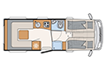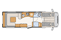 Il camper per le persone che viaggiano in coppia. Con tanto spazio, un'enorme dinette panoramica e comodi letti singoli nella mansarda o letto basculante, questo camper è ideale per viaggiare comodamente in coppia. Adatto a tutte le temperature grazie al doppio pavimento riscaldato con installazione antigelo per l'acqua.