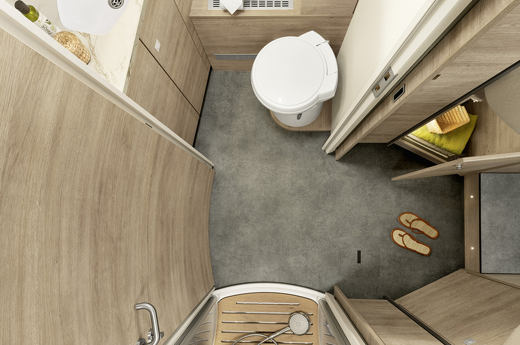 - Doppio pavimento moderno per un’installazione antigelo a prova d’inverno e un ulteriore spazio di stivaggio (altezza 260 mm
