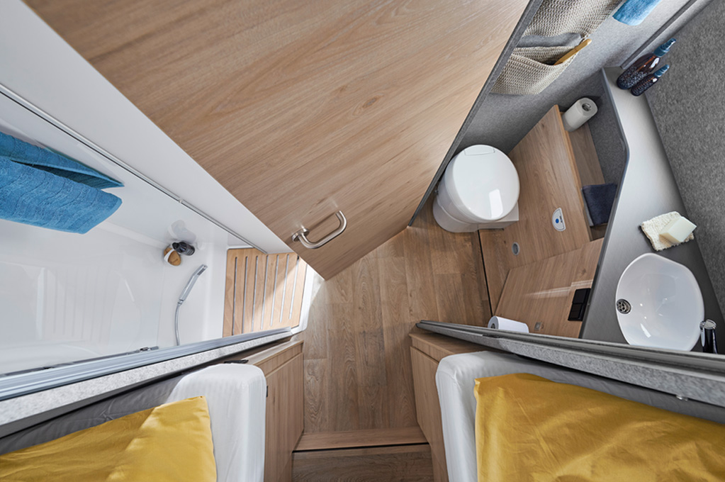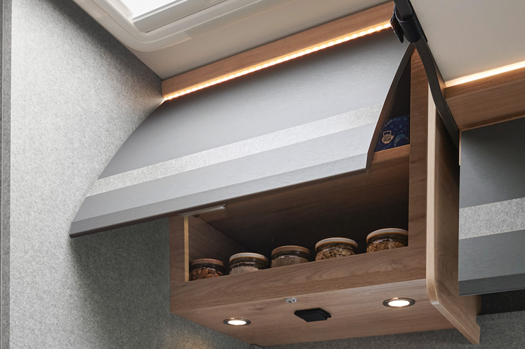 Tra i dettagli imperdibili del Just Go, spicca il letto basculante disponibile come optional, che offre una soluzione versatile per ottimizzare lo spazio interno. La generosa altezza in piedi di 213 cm (non sotto il letto basculante) garantisce un'abitabilità ottimale, mentre il grande letto nautico da 190 x 150 cm, regolabile in altezza, assicura un sonno riposante.
