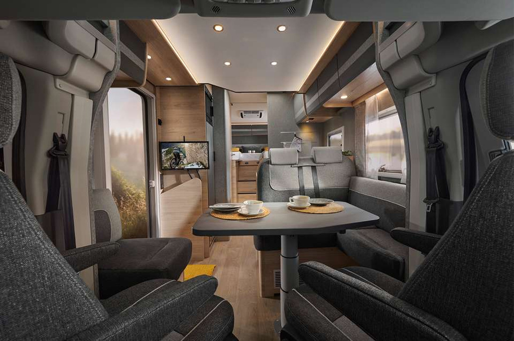 Dethleffs Just Go T 7055 EB è progettato per offrire un viaggio confortevole e sicuro, con caratteristiche come il Tempomat, gli airbag per il conducente e il sistema audio Ford con DAB+ Radio. Il pacchetto Comfort aggiunge ulteriori dotazioni utili, come i paraurti anteriori verniciati e la dinette ad L con tavolo indipendente, che permette di stendere comodamente le gambe sul lato trasversale.