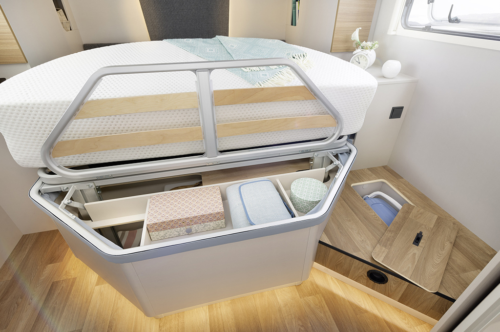 - Grande capacità di stivaggio per quattro persone con 3,5 t di massa complessiva tecnicamente consentita