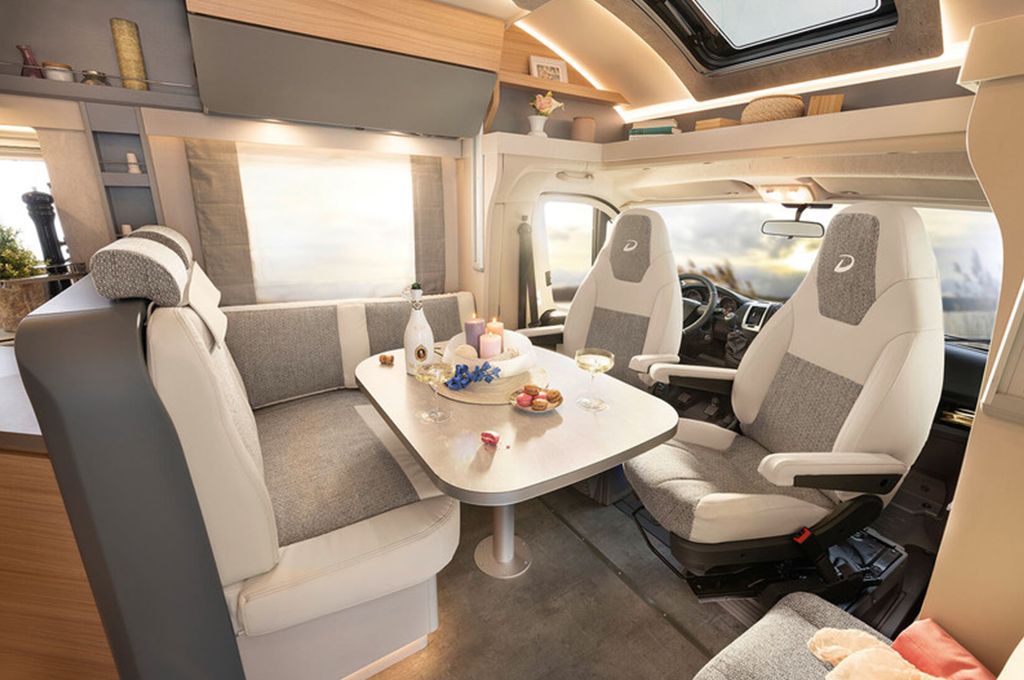 Con il Pulse inizia una nuova generazione del design dei profilati Dethleffs. La cabina guida aerodinamica sfocia elegantemente nella scocca, i cui lineamenti armonici proseguono fino alla parte posteriore dell’autocaravan. Tutti i profilati sono disponibili con un letto basculante (optional).