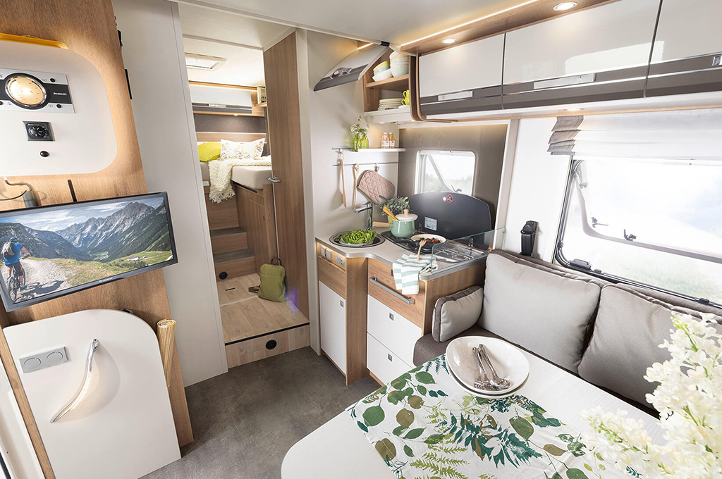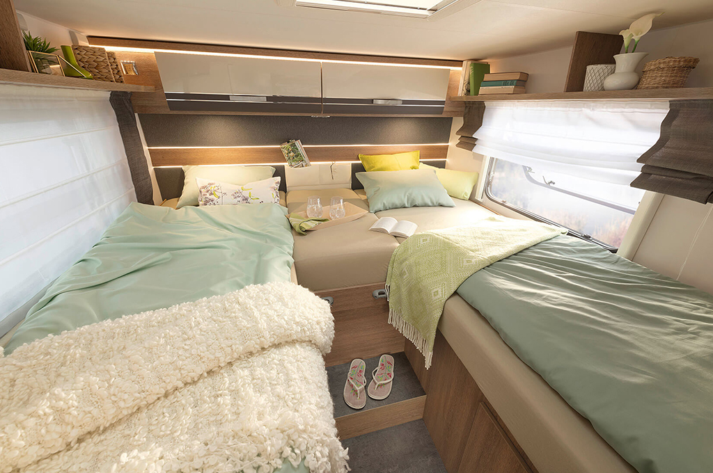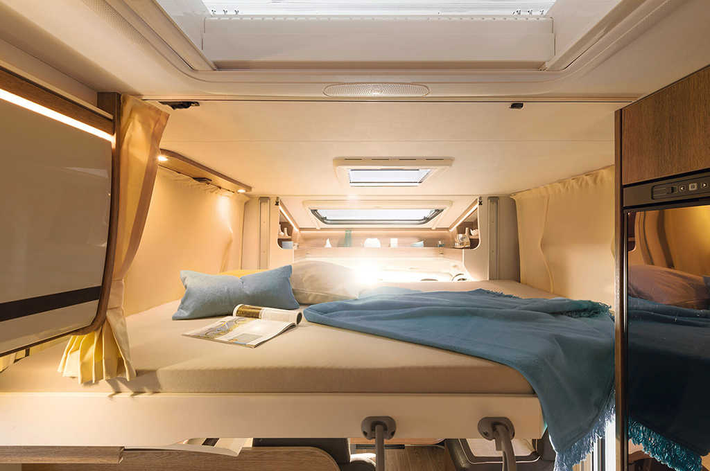 La massima flessibilità è garantita in tutti i camper Dethleffs Trend dalla ricca offerta di posti letto. I profilati ad esempio possono essere dotati di un letto basculante optional, mentre nei motorhome è già di serie. Questo offre ulteriore spazio di riposo in un batter d’occhio.