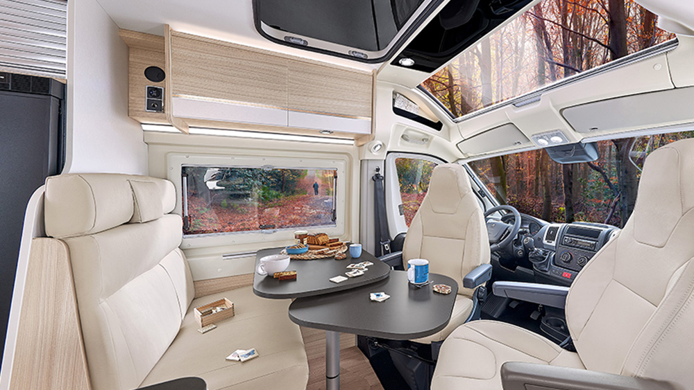 Infine, con l'ADVANCE SAFETY PACK*, che include SAFETY PACK ed EASY DRIVING PACK, ogni aspetto della sicurezza e del comfort è stato considerato attentamente, garantendo la massima tranquillità durante ogni viaggio. La grondaia porta laterale con illuminazione a LED integrata, la presa USB 5V camera e l'illuminazione d'ambiente sotto pensile camera completano l'esperienza Dreamer Fun, offrendo un ambiente accogliente e funzionale per tutti i viaggiatori.