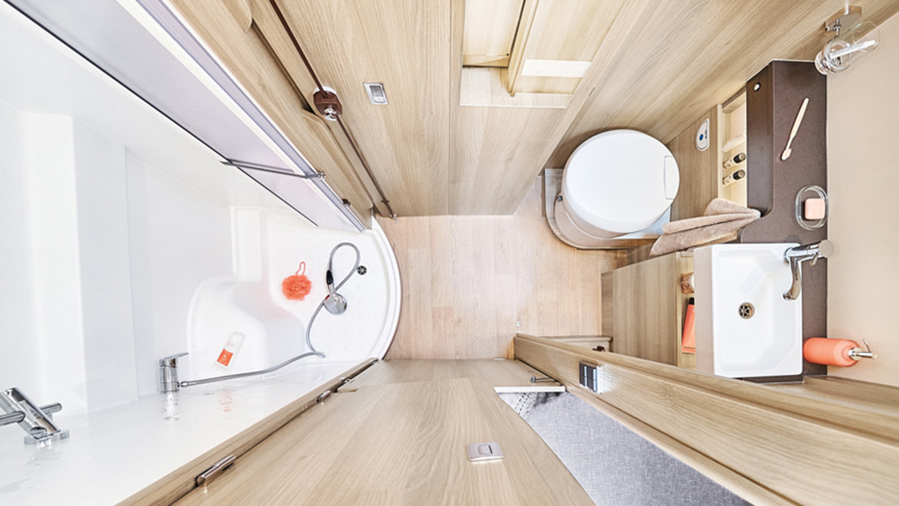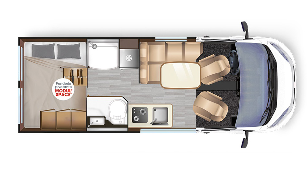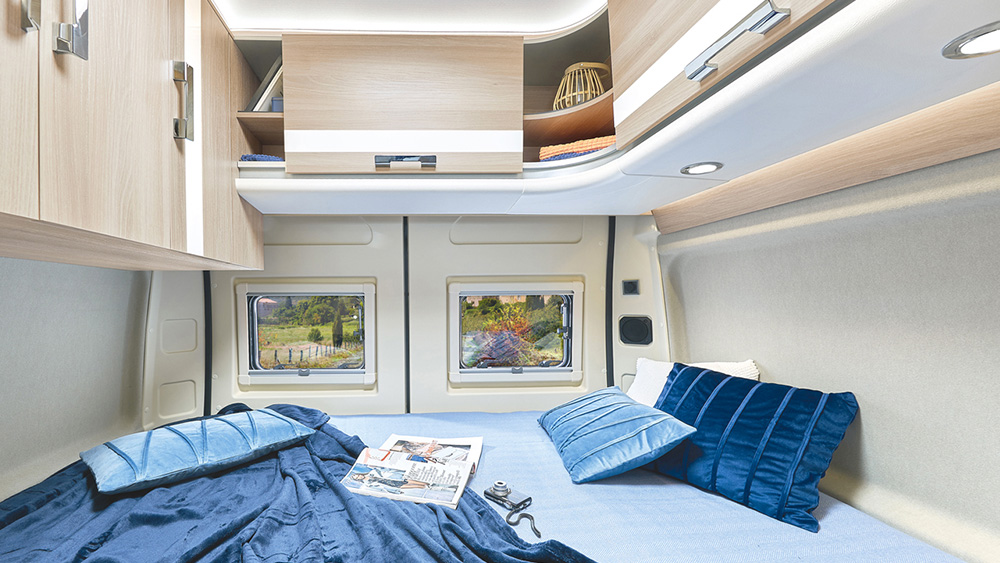 Il design intelligente include un grande gavone con volume modulabile, ideale per lo stivaggio di attrezzature e bagagli. Caratteristiche come il serbatoio acque grigie riscaldato e l'isolamento XHP garantiscono comfort termico in ogni stagione.