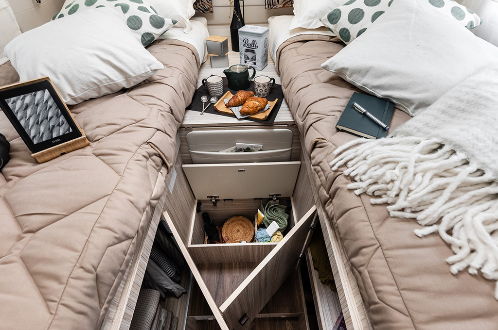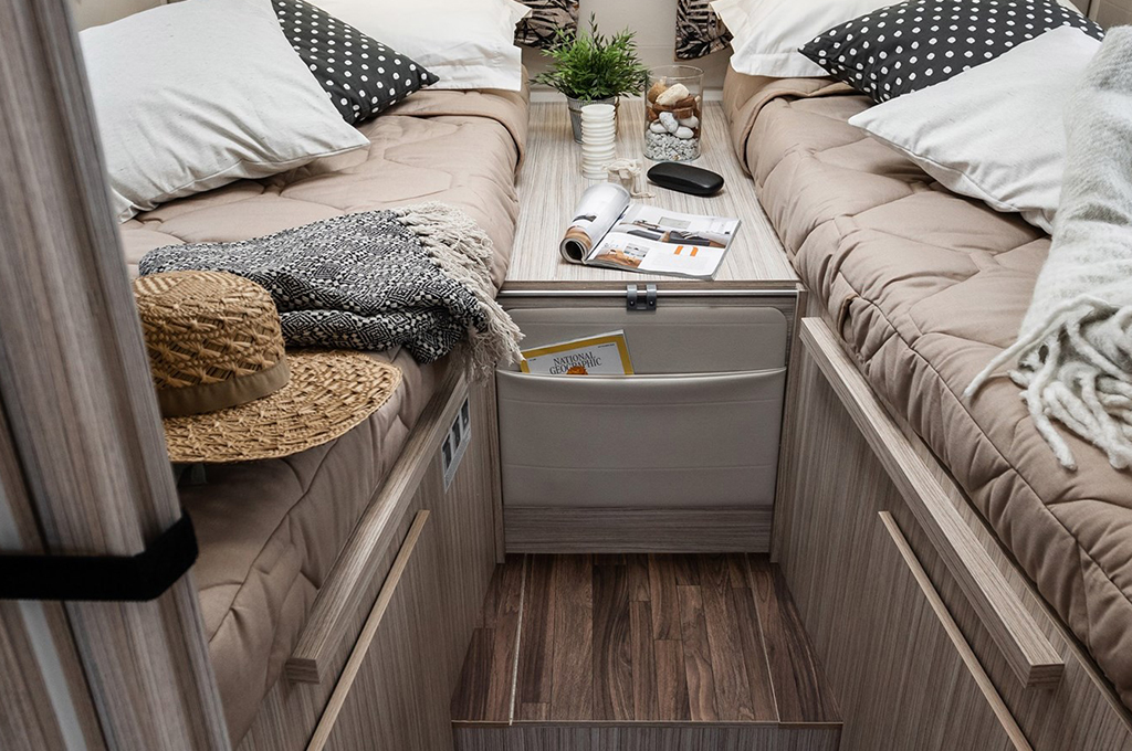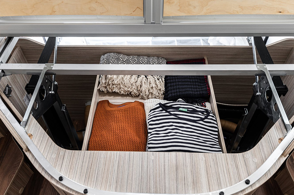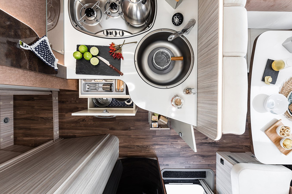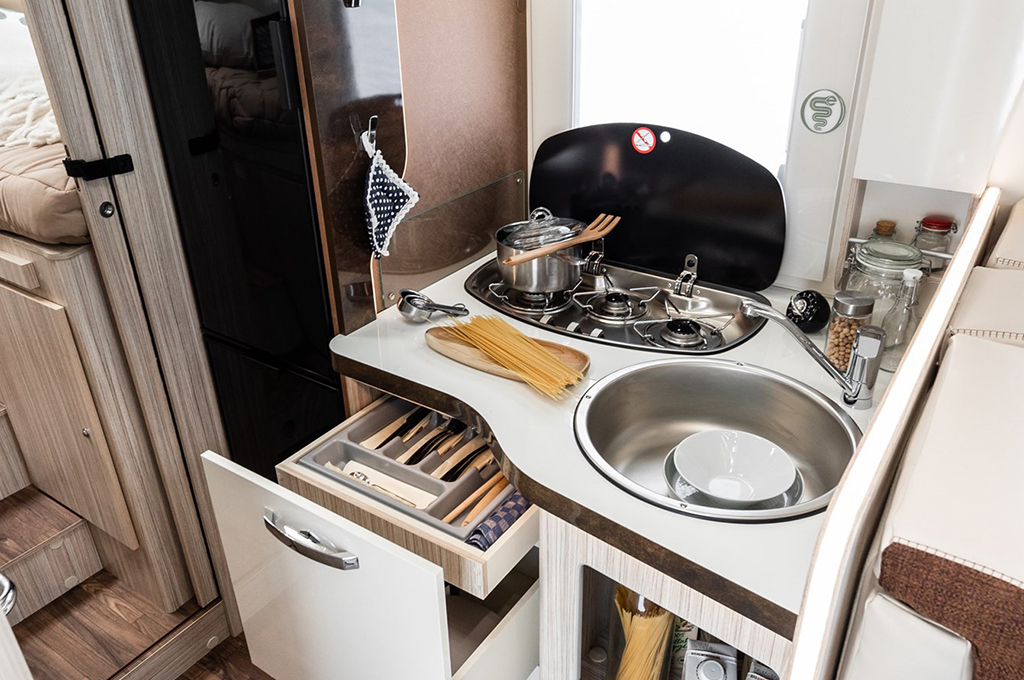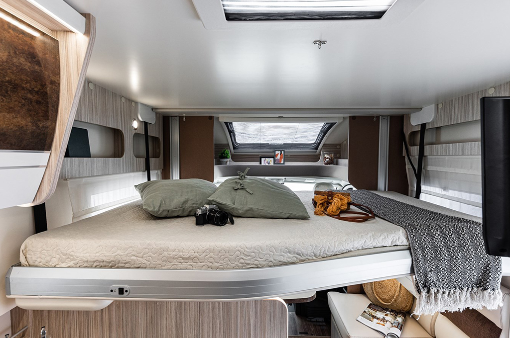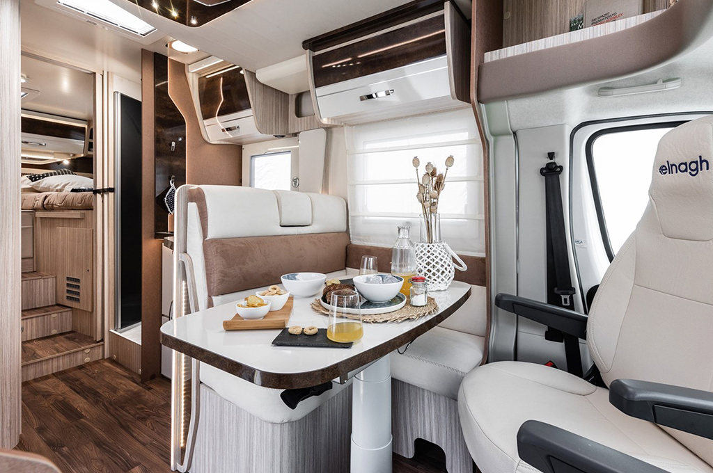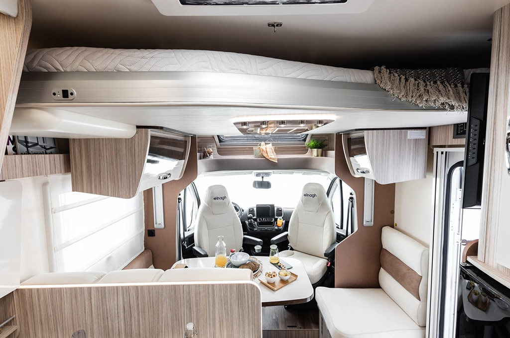 La cucina, organizzata come quella di casa, è dotata di piano cottura a tre fuochi, ampio frigorifero e pensili ben organizzati, mentre la zona notte offre comfort e privacy con materassi anallergici, armadi spaziosi e prese USB integrate. Ogni dettaglio, dalle finestre retroilluminata alla parete anti-schizzi in cucina, riflette l'attenzione di Elnagh per un design pratico e orientato al comfort, rendendo la serie T-Loft la scelta ideale per chi desidera esplorare il mondo senza rinunciare al lusso e alla funzionalità di casa propria.