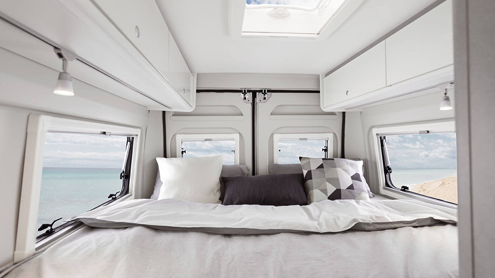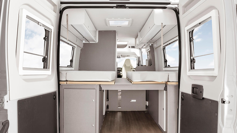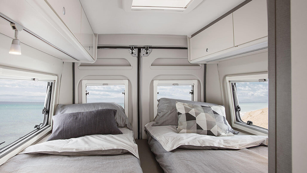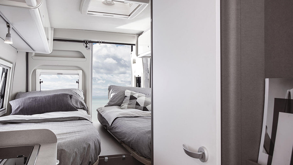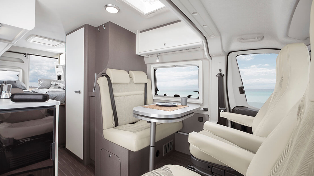 L'interno accogliente e ben progettato offre soluzioni intelligenti per la tua comodità. I pensili e i cassetti con sistemi di chiusura soft-close nella cucina compatta di Etrusco CV 640 SB ti consentono di preparare deliziose pietanze senza sforzo. Con i sedili del guidatore e del passeggero che si girano di 180 gradi e il tavolo che si sistema facilmente, puoi gustare i tuoi pasti in un ambiente confortevole e accogliente.