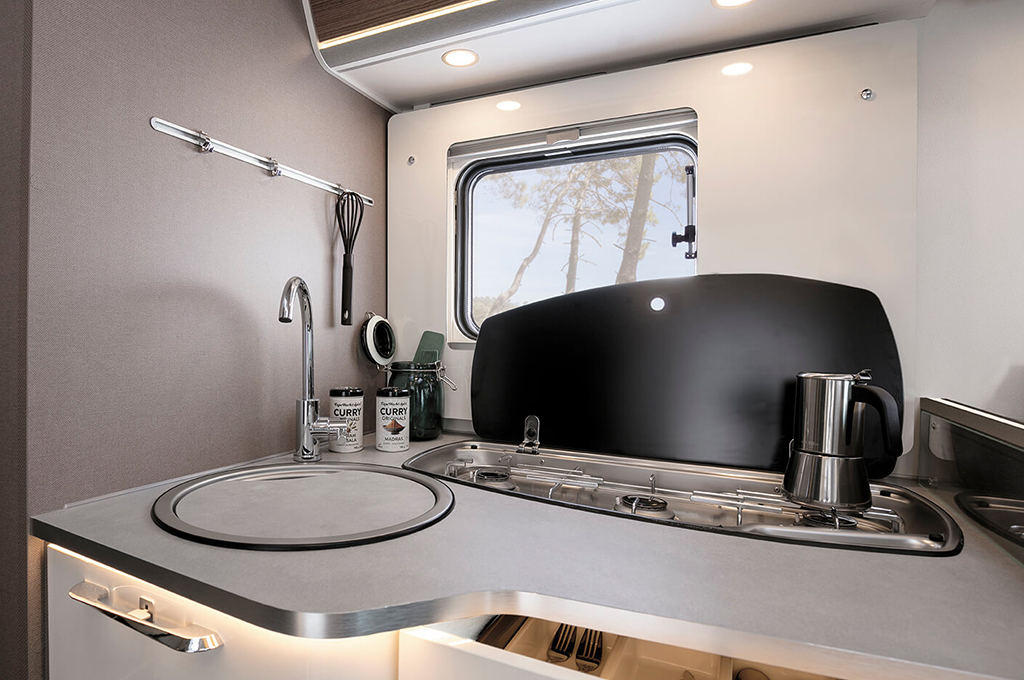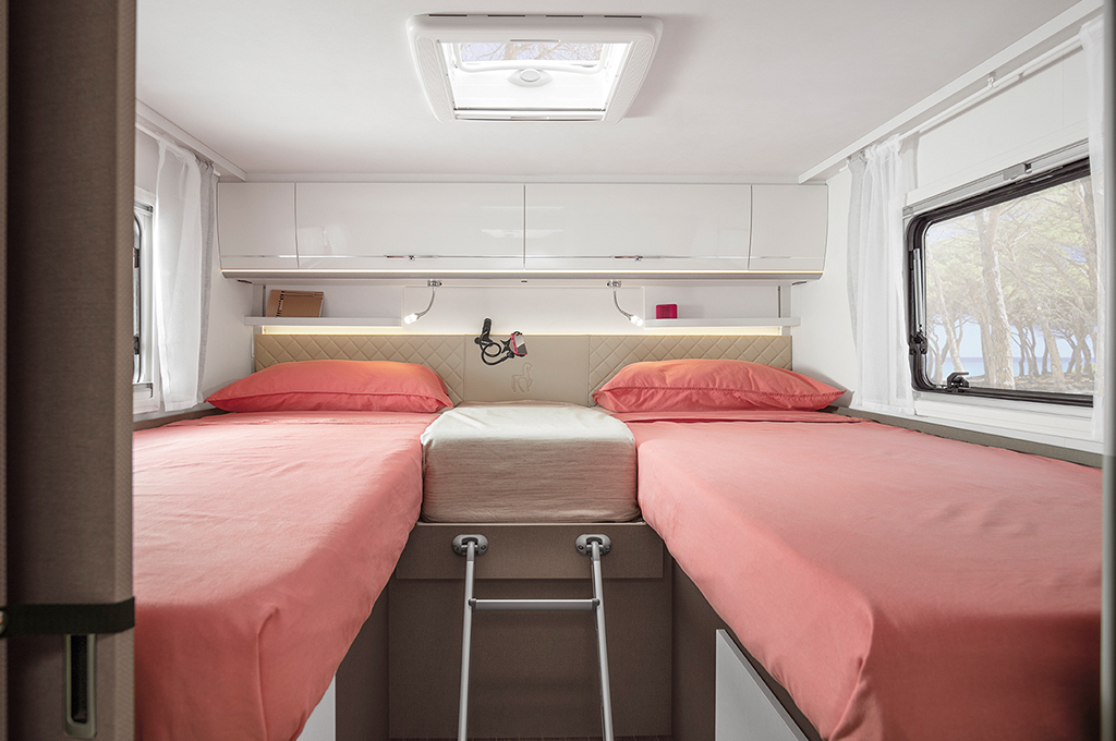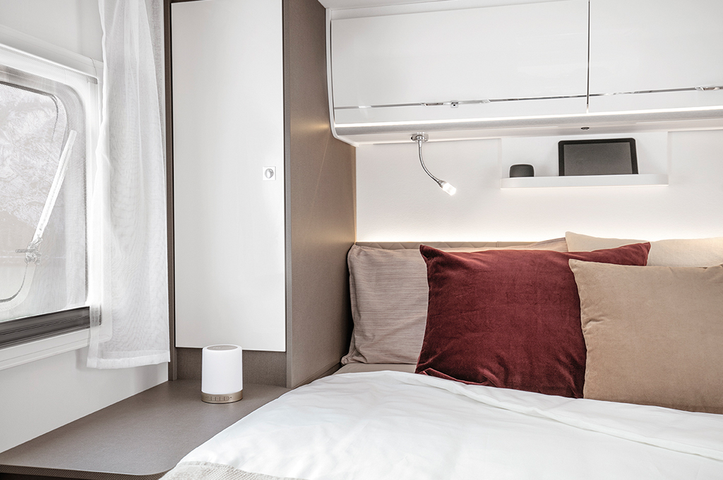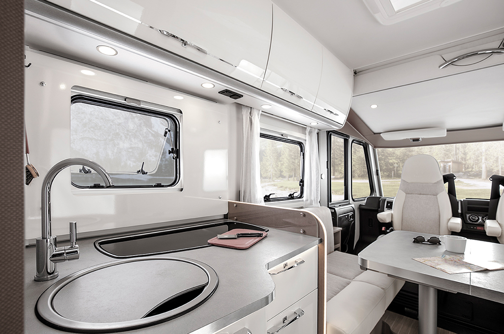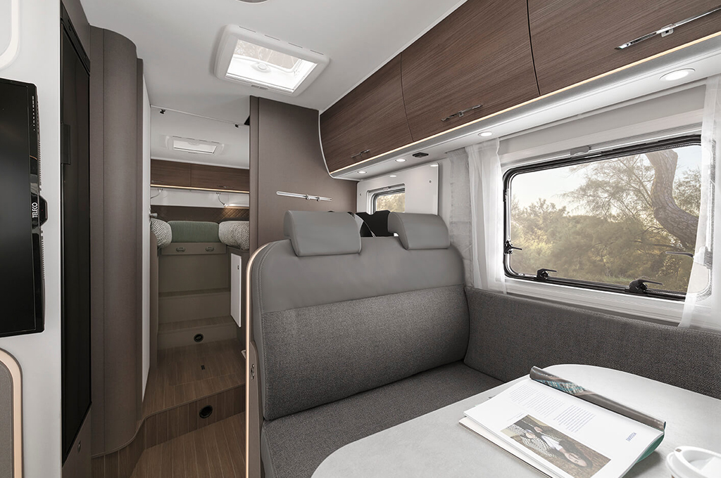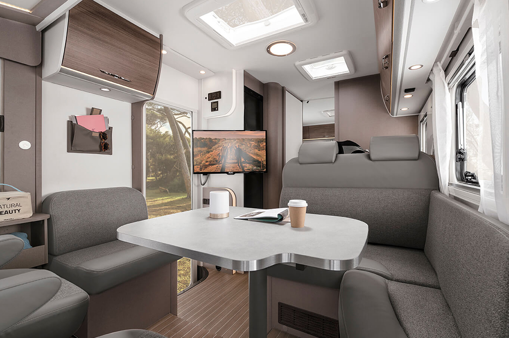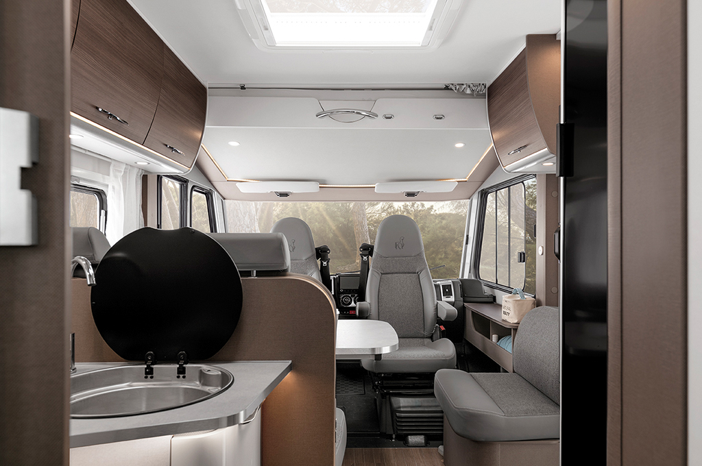 Vacanze da sogno. Con Etrusco proverete la sensazione di libertà e viaggerete con stile: il nuovo I-Front è uno dei punti forti. La morbida linea che unisce la parte frontale e il tetto dona al camper una silhouette elegante. All’interno, i colori tenui e il design italiano si fondono perfettamente. Un ambiente in cui sentirsi bene e rilassarsi.